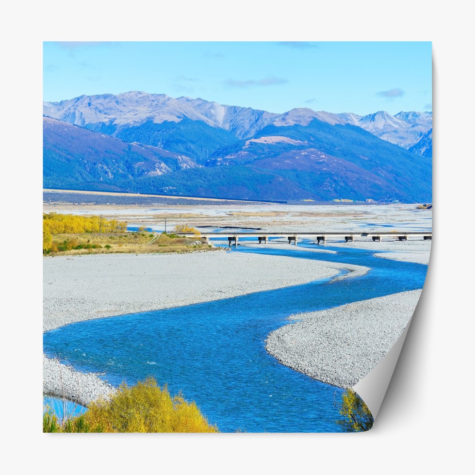 Repositionierbarer Aufkleber herbstliche flussbiegung im Arthur's Pass National Park, South Island, New Zealand