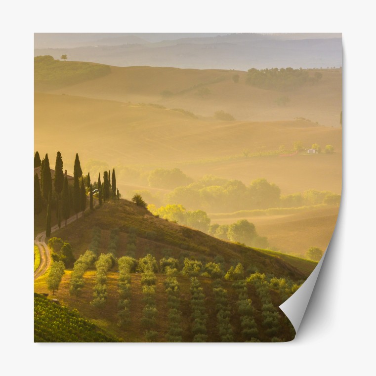 Repositionierbarer Aufkleber Nebliger morgen über Val d'Orcia