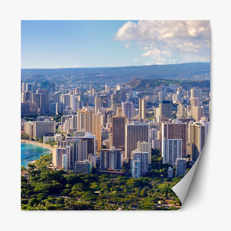Repositionierbarer Aufkleber Panoramablick auf eine tropische küstenstadt