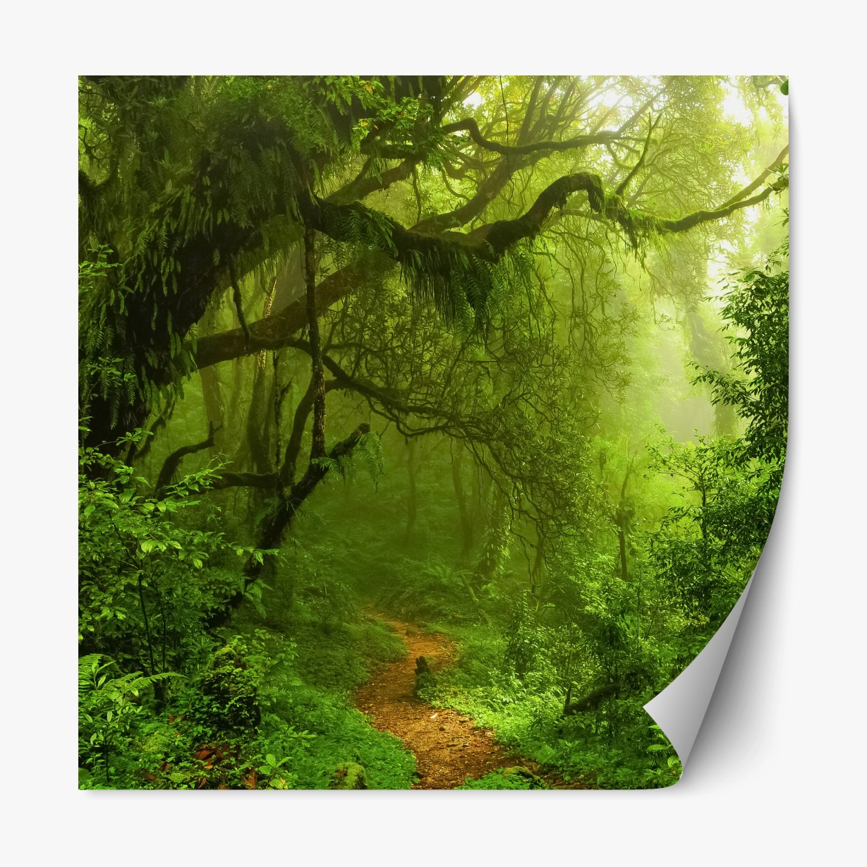 Repositionierbarer Aufkleber Üppiger grüner waldpfad