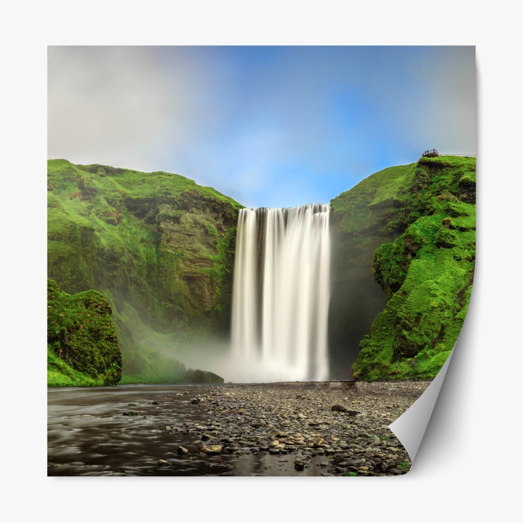 Repositionierbarer Aufkleber Panorama des wasserfalls Skogafoss