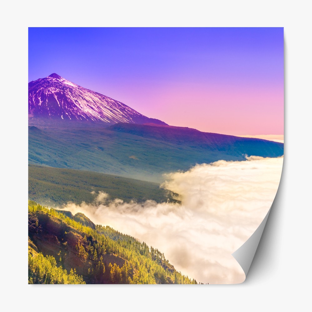Repositionierbarer Aufkleber Vulkanischer gipfel Teide über einem meer aus wolken