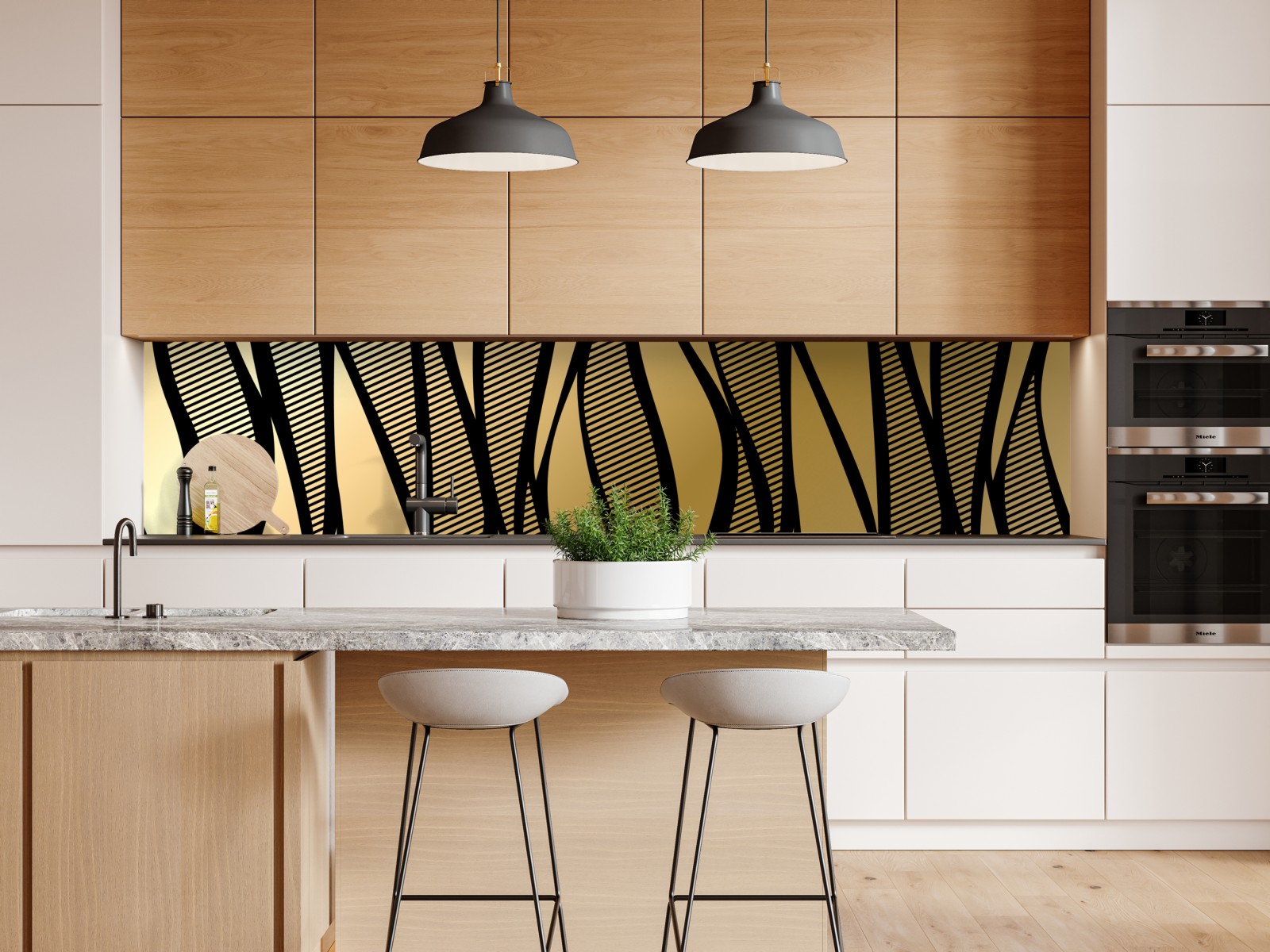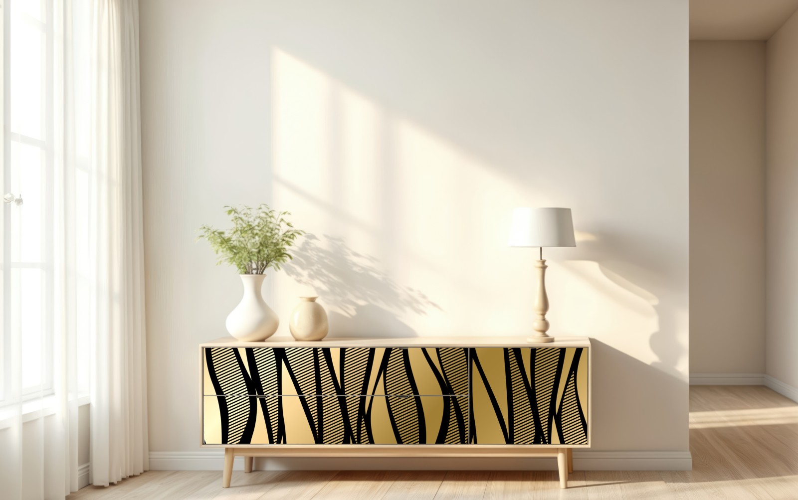 elegantes goldschwarzes abstraktes wellenmuster verleiht jedem raum einen luxuriösen art deco akzent.