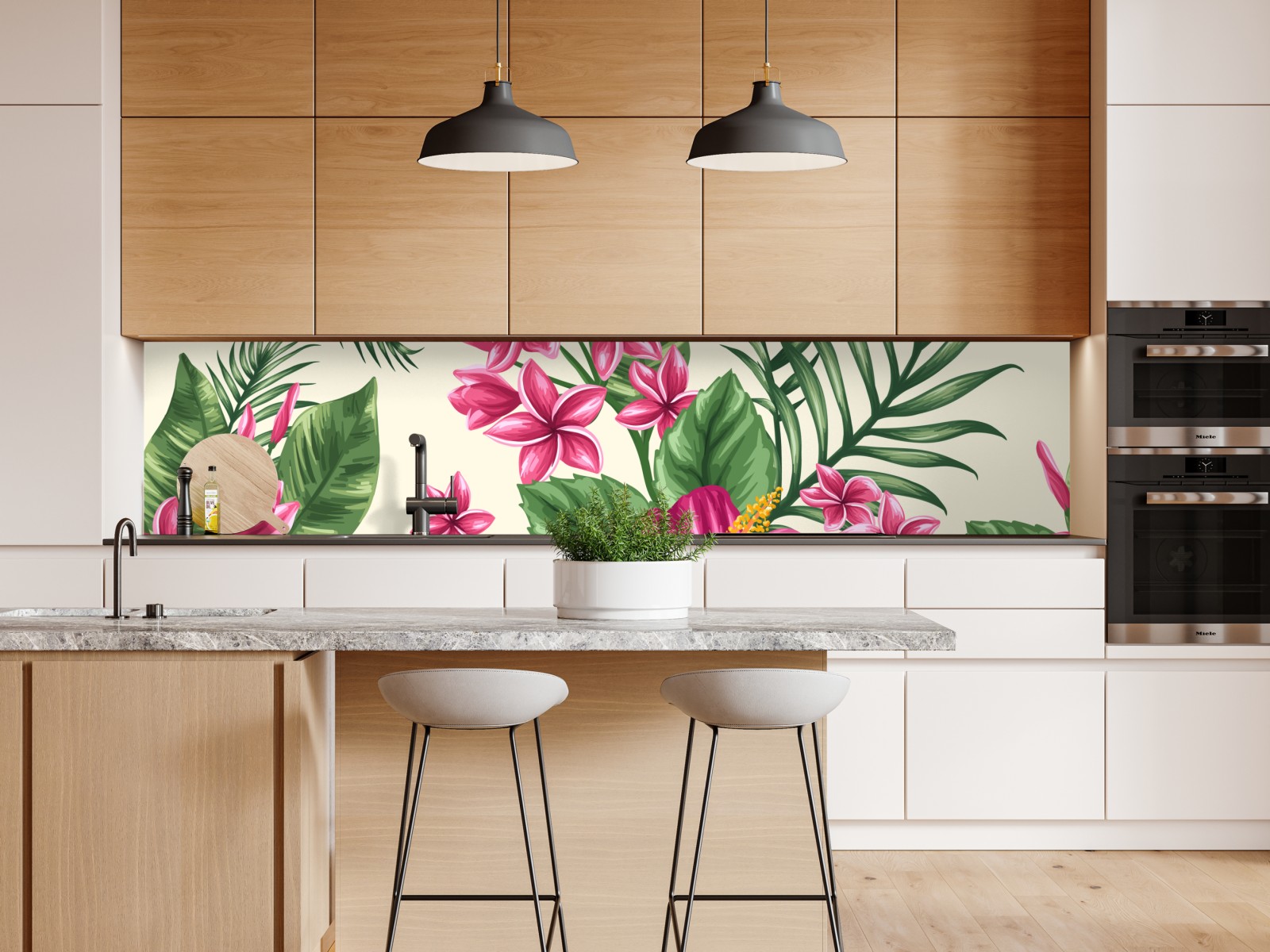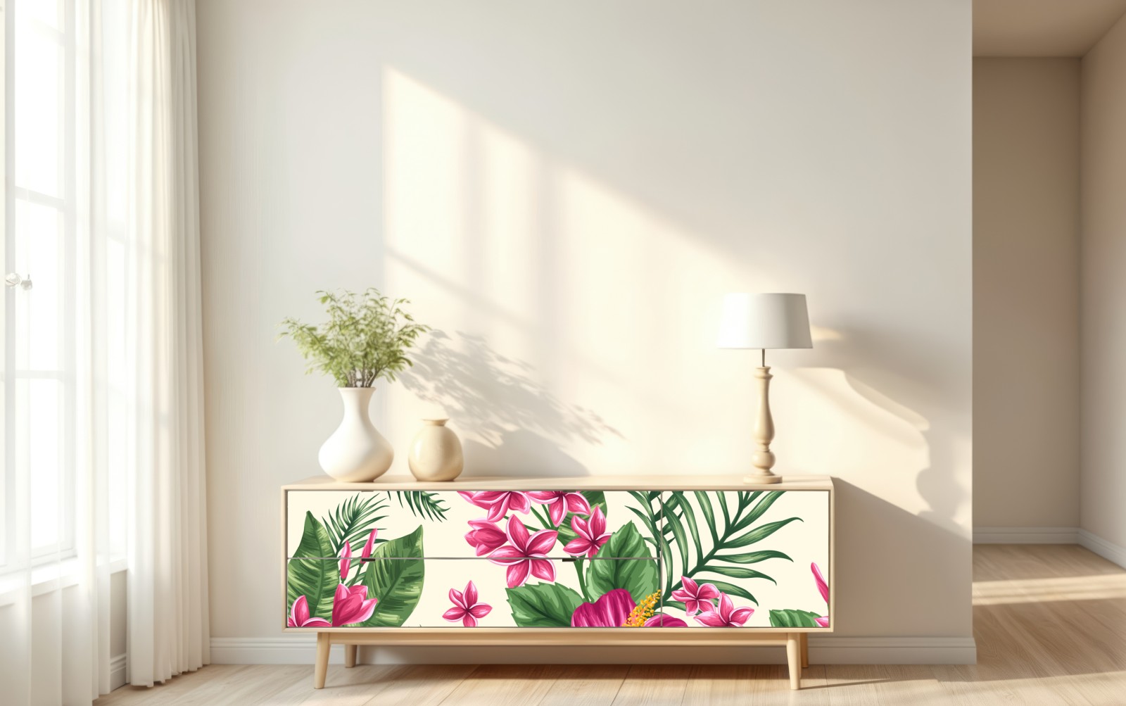 lebendiges tropisches muster mit rosa hibiskus und üppigen grünen blättern verleiht jedem interieur einen exotischen touch.