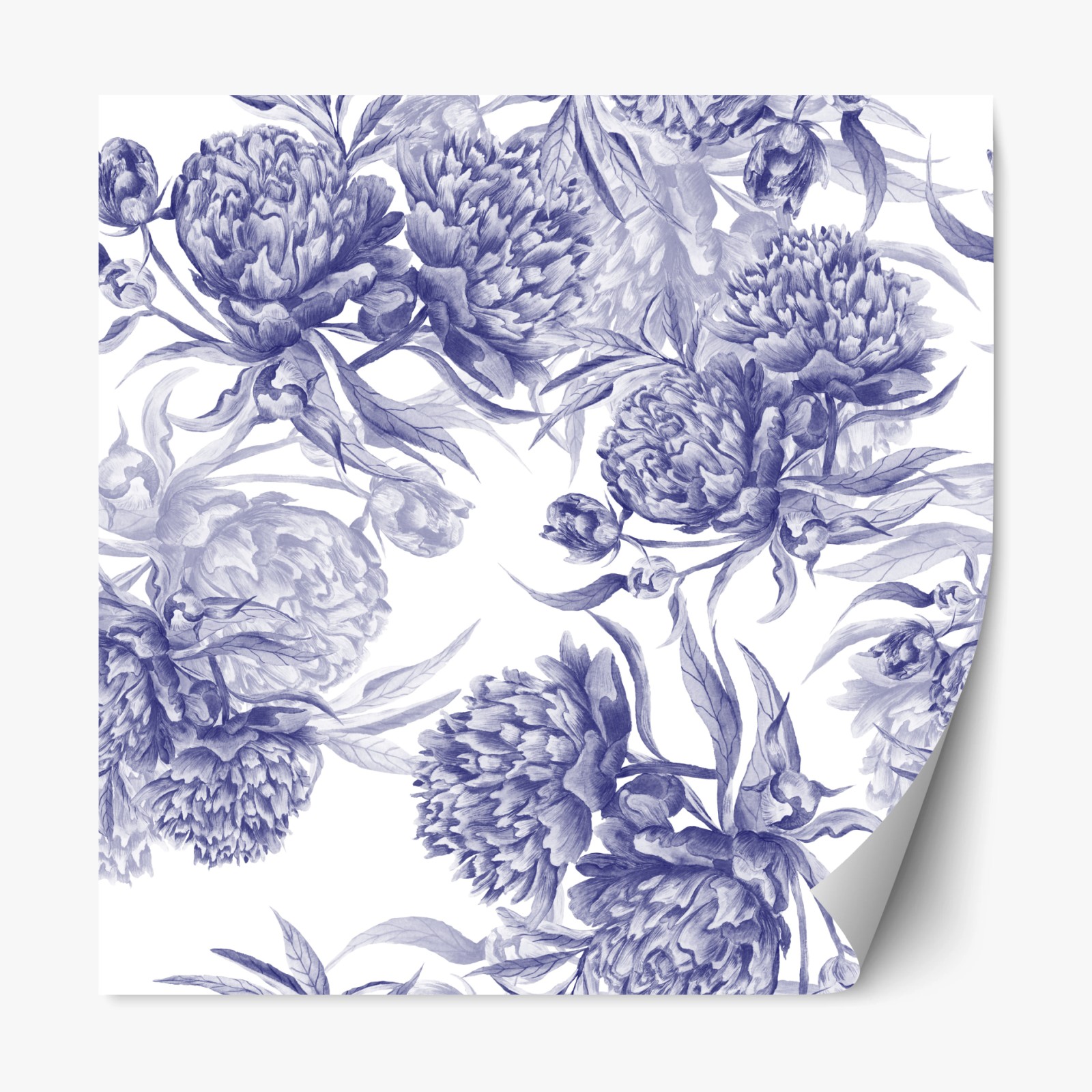 Repositionierbarer Aufkleber Blaue pfingstrosen botanisches muster
