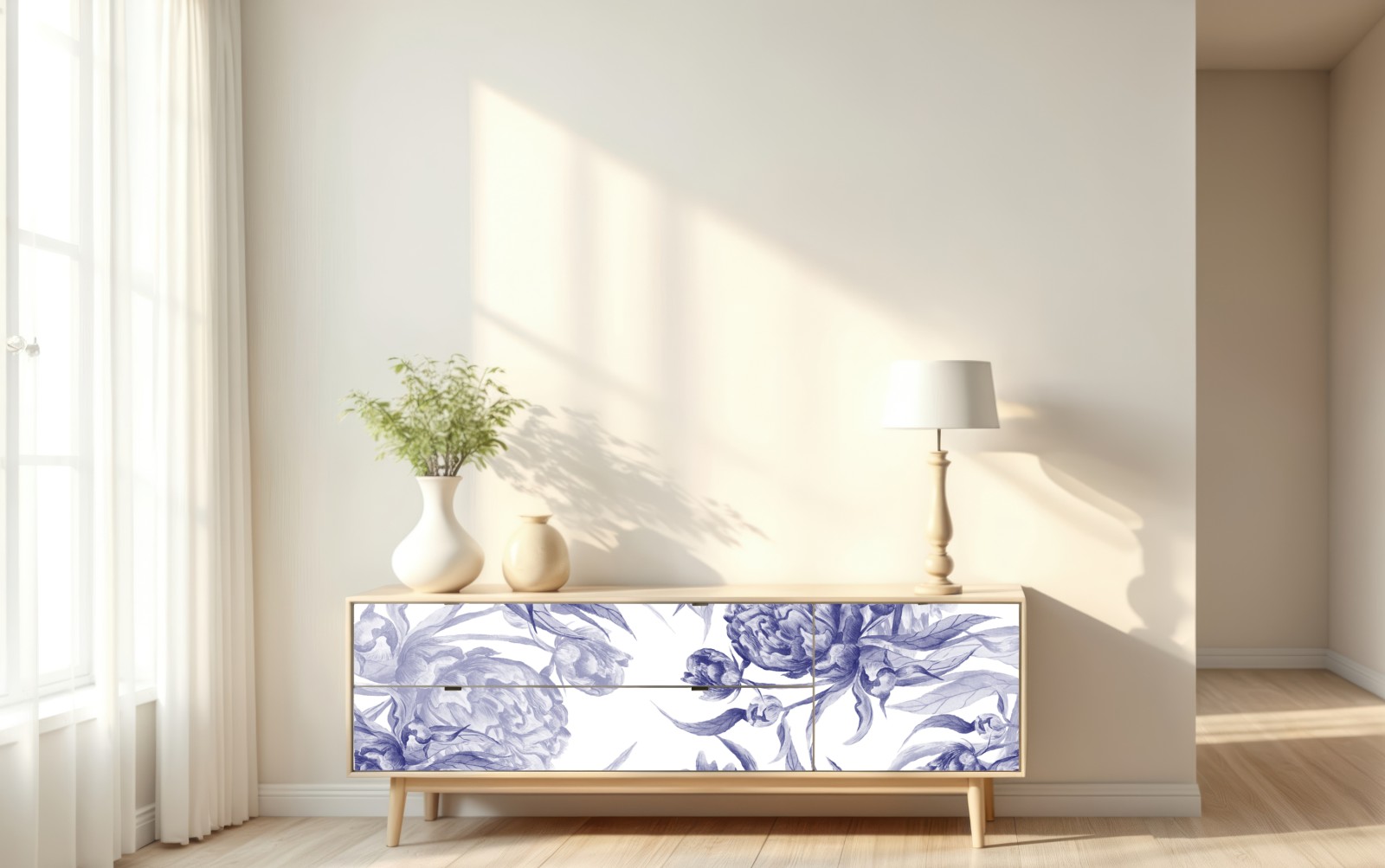 Repositionierbarer Aufkleber blaue pfingstrosen botanisches muster