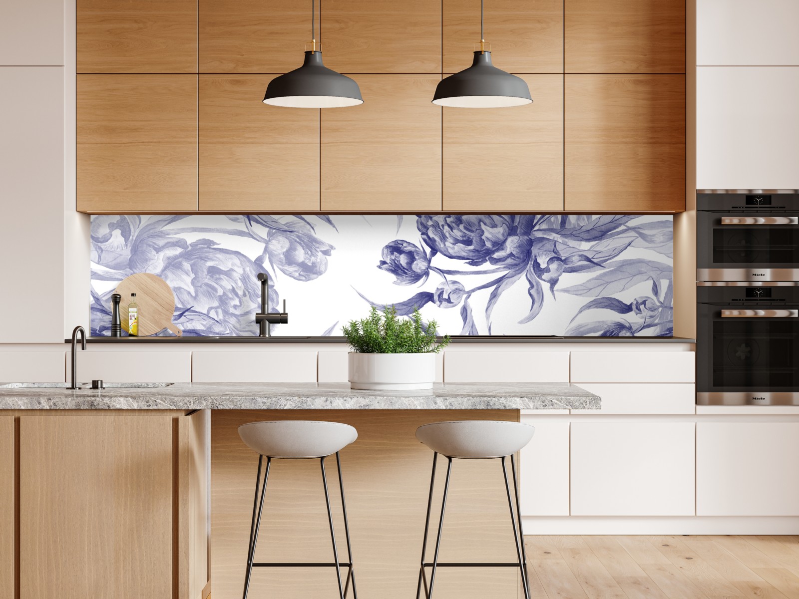 Elegante aquarell-illustration blauer pfingstrosen verleiht jedem interieur zeitlosen charme.