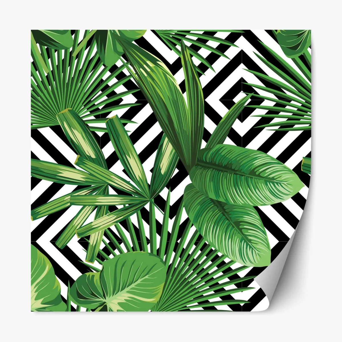Repositionierbarer Aufkleber tropische blätter mit geometrischem muster