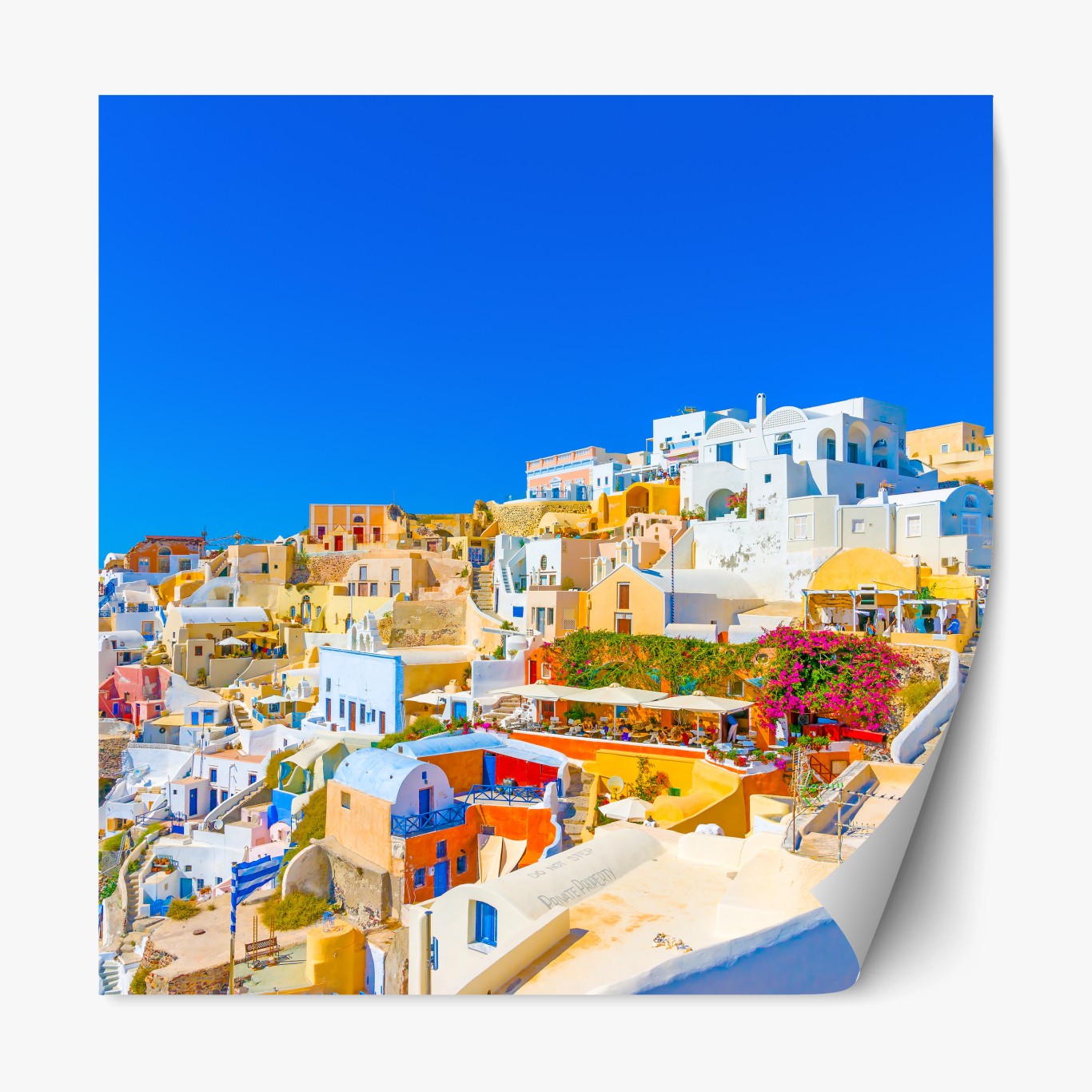 Repositionierbarer Aufkleber Sonniges Dorf Oia, Santorini