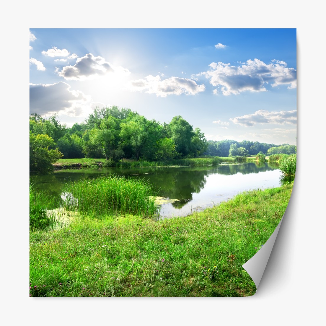 Repositionierbarer Aufkleber Sonnige wiese am fluss