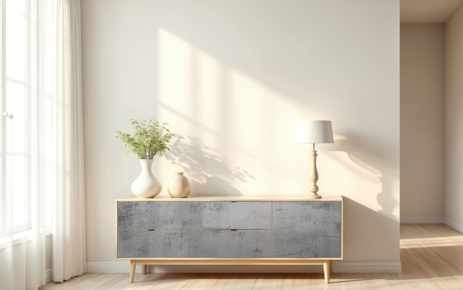 Verleihen Sie Ihrem Raum industriellen Charakter mit einer rohen grauen Betonstruktur, die minimalistischen urbanen Charme bringt.