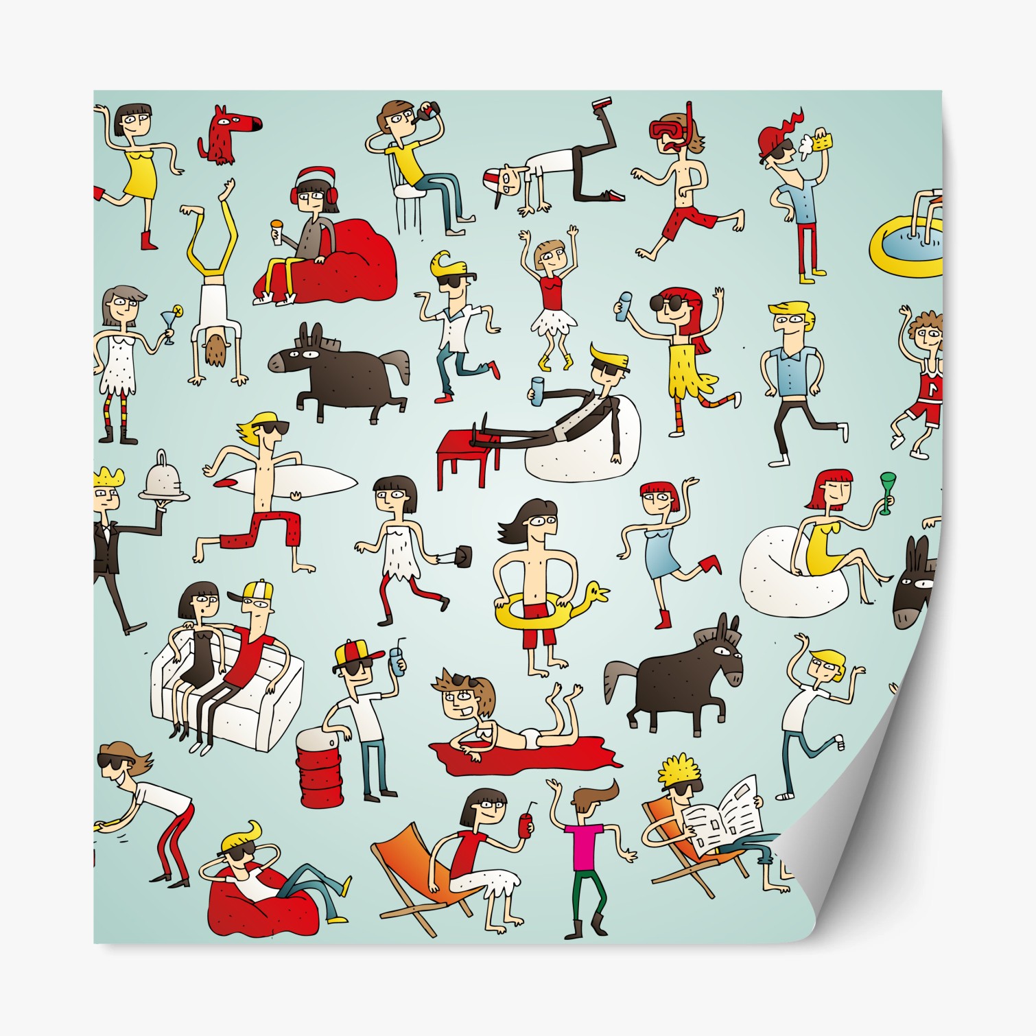 Repositionierbarer Aufkleber Verspielte cartoonszene auf türkisem hintergrund