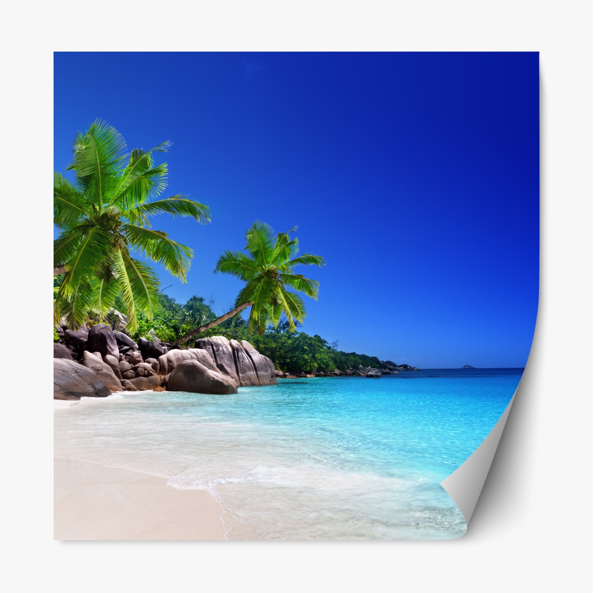 Repositionierbarer Aufkleber Tropischer strand mit türkisfarbenem wasser und palmen