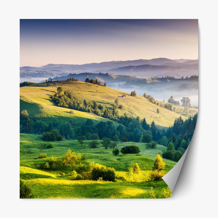Repositionierbarer Aufkleber Sonnenuntergang in den Karpaten über sanften grünen Hügeln