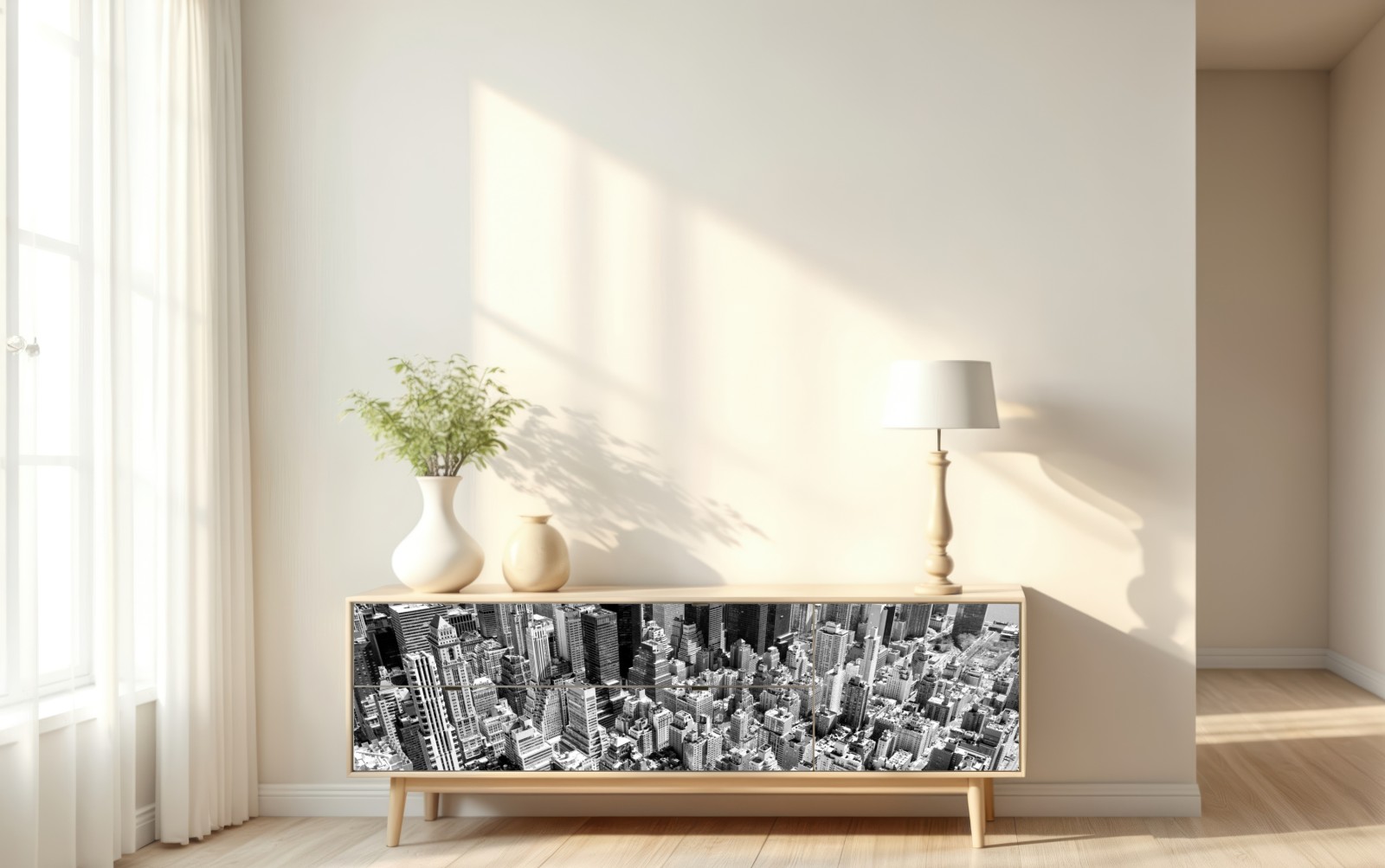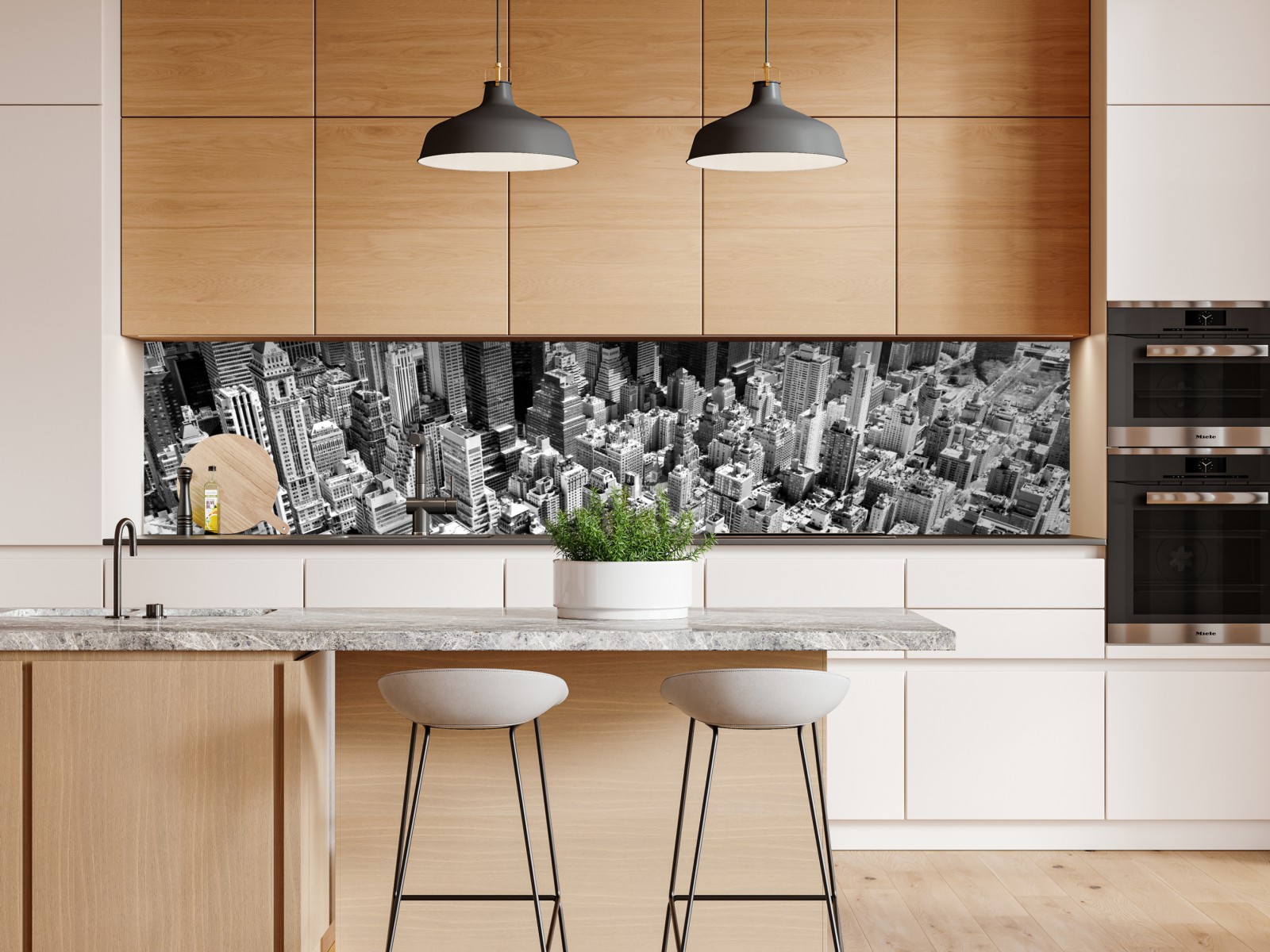 Dramatische schwarzweiß-luftaufnahme von Manhattan bringt moderne urbane Energie und architektonische Details an Ihre Wände.