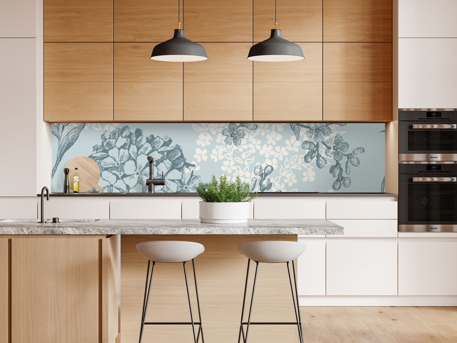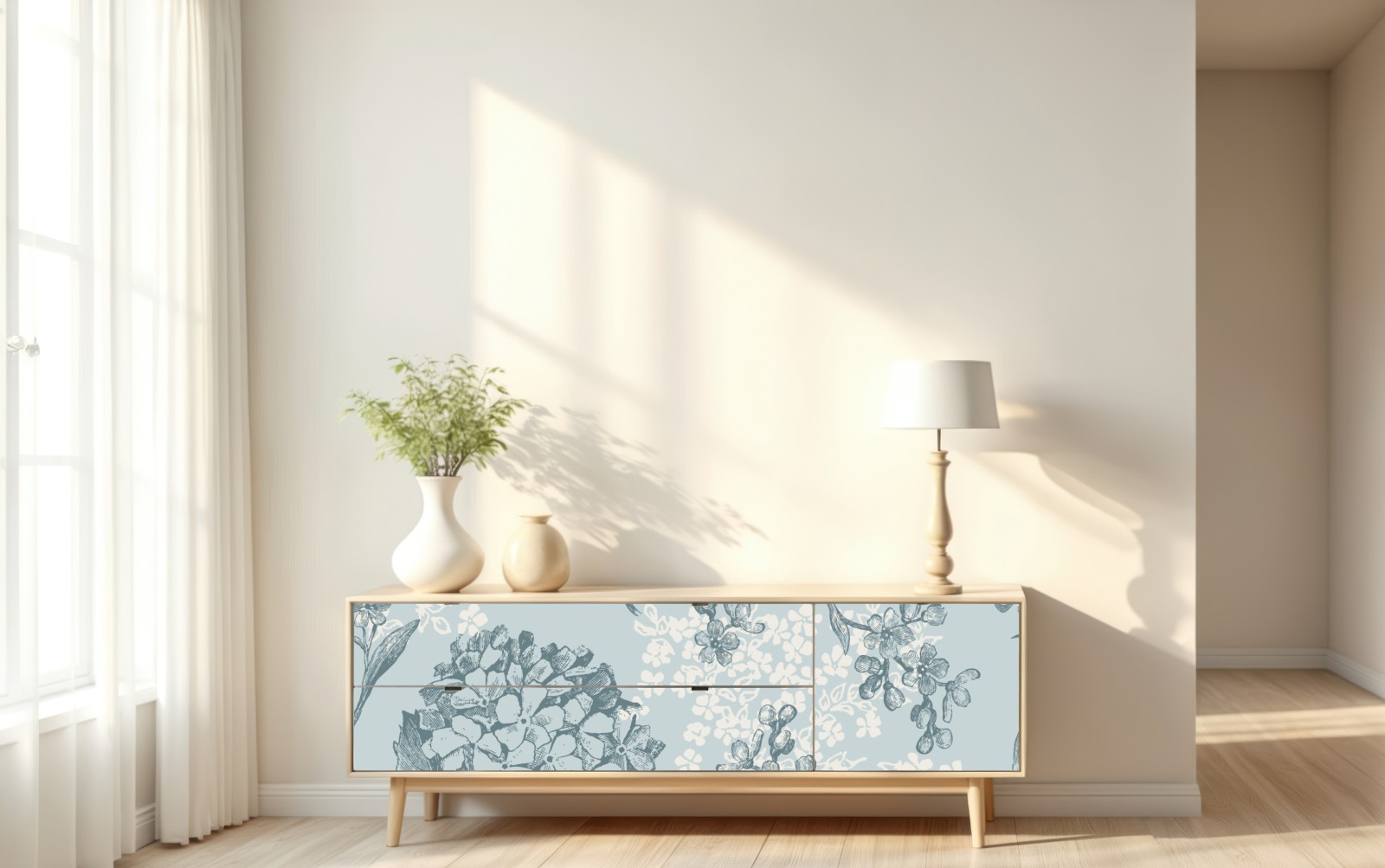 zartes handgezeichnetes hortensienmuster in sanften türkis- und elfenbeintönen verleiht jedem raum einen zeitlosen vintage-charme.