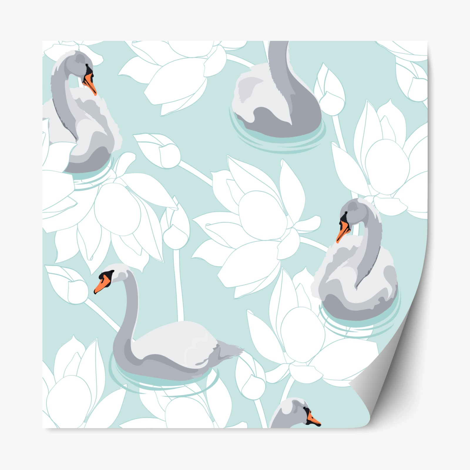 Repositionierbarer Aufkleber Sanfte schwäne und lotusblumen