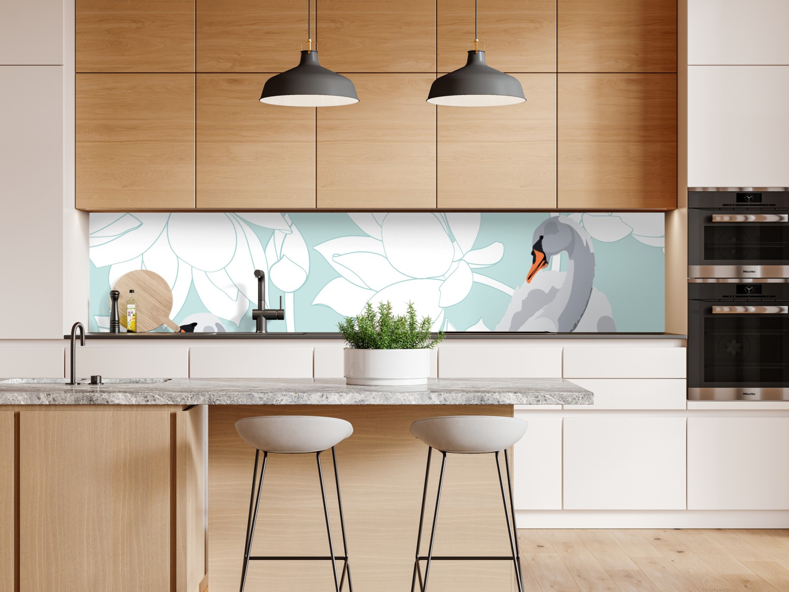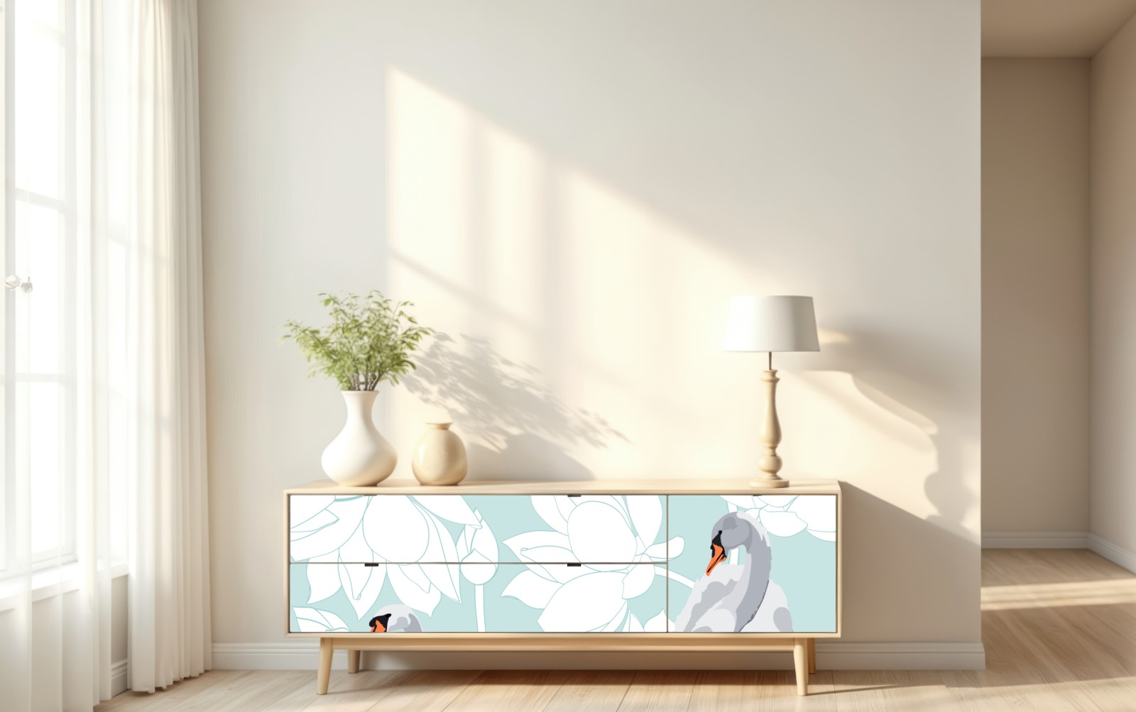 sanfte pastellschwäne gleiten zwischen lotusblüten und schaffen ein beruhigendes nahtloses muster ideal für ruhige wohnräume.