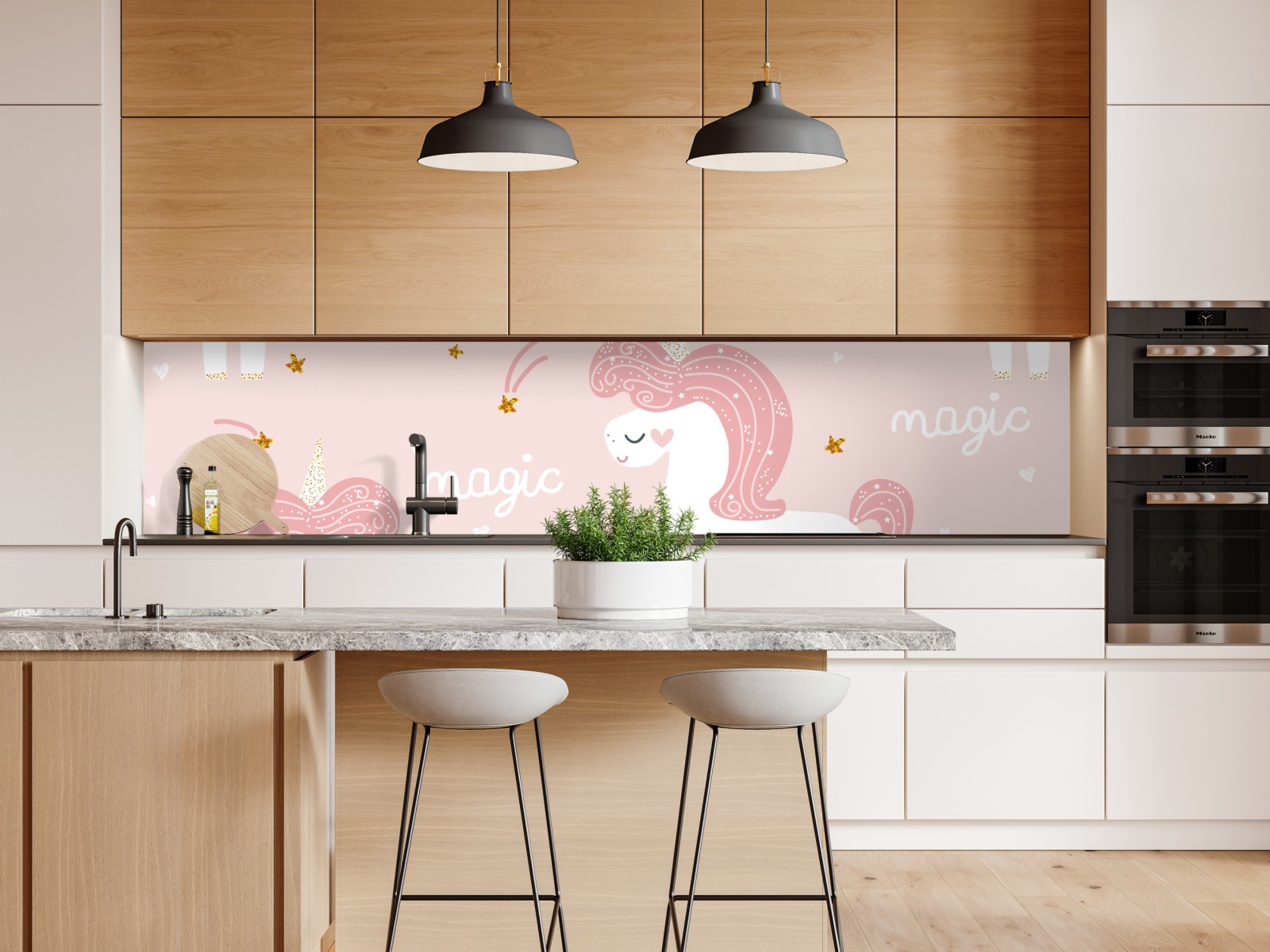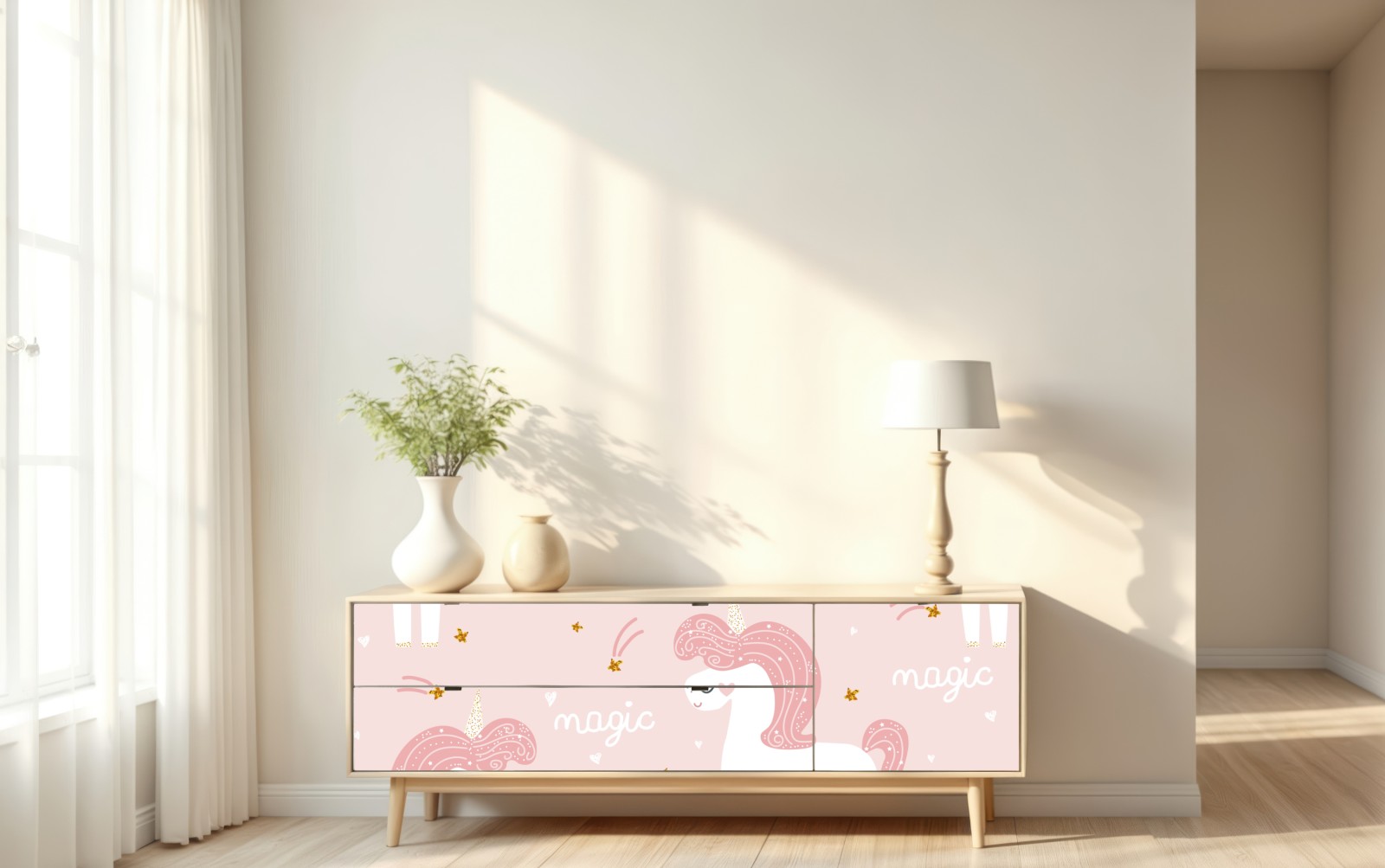 Ein sanftes Pastell-Einhornmotiv, das Kinderzimmern und Babyzimmern eine verträumte, verspielte Atmosphäre verleiht.