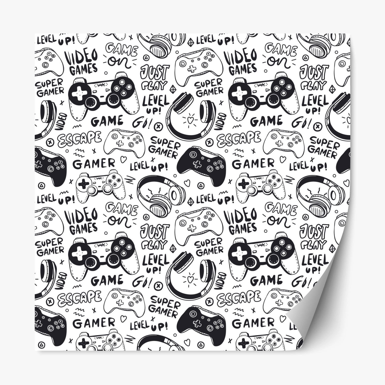 Repositionierbarer Aufkleber Doodle-muster mit videospiel-controllern