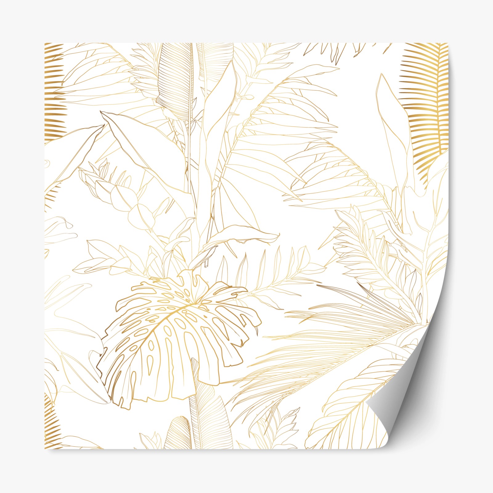 Repositionierbarer Aufkleber Goldene tropische blätter line art