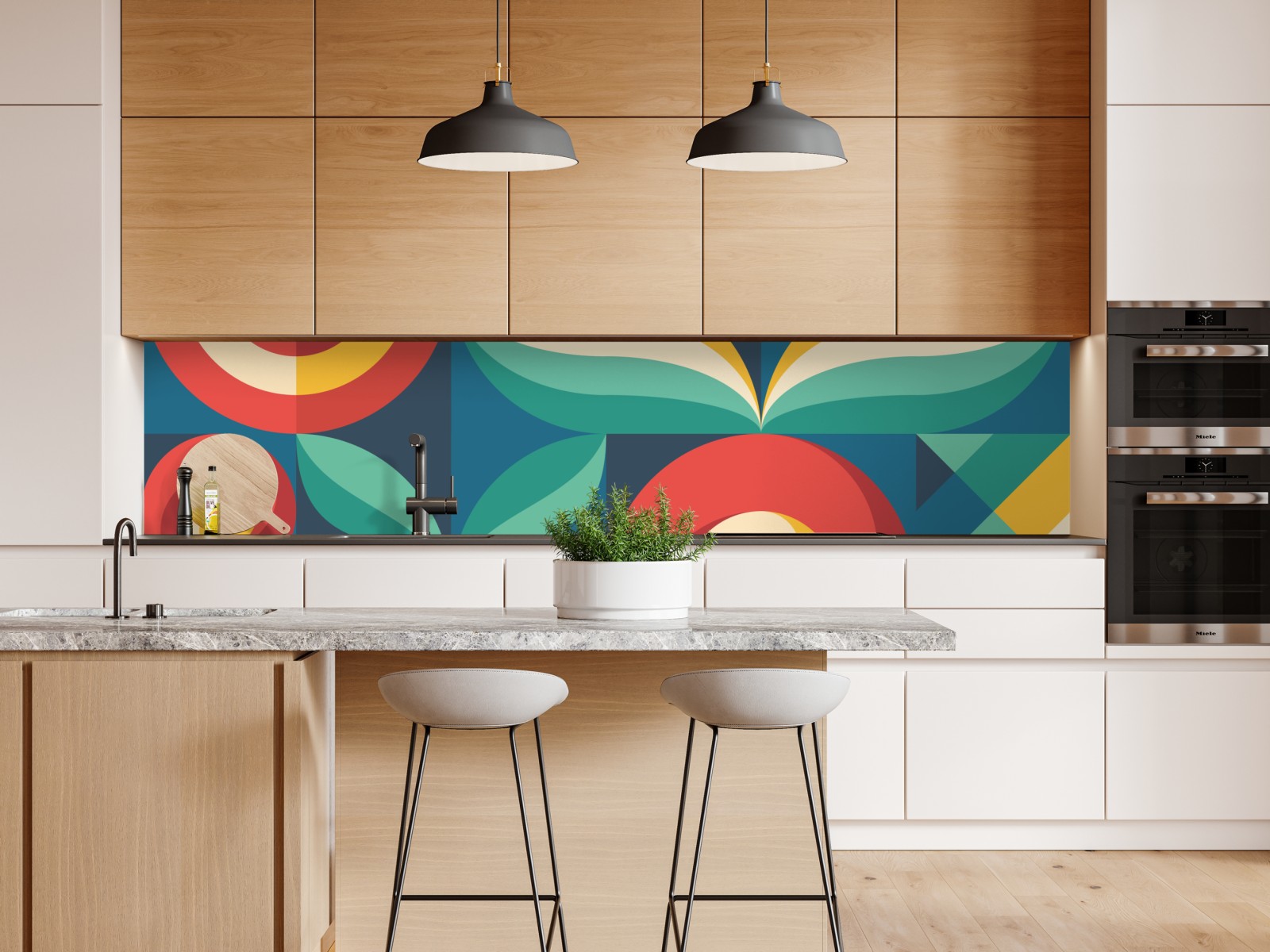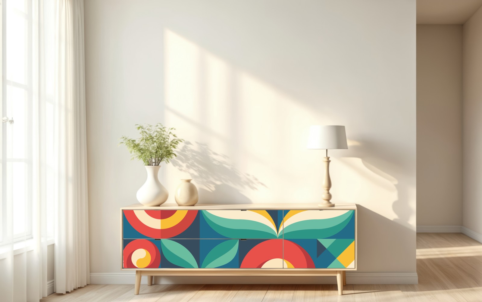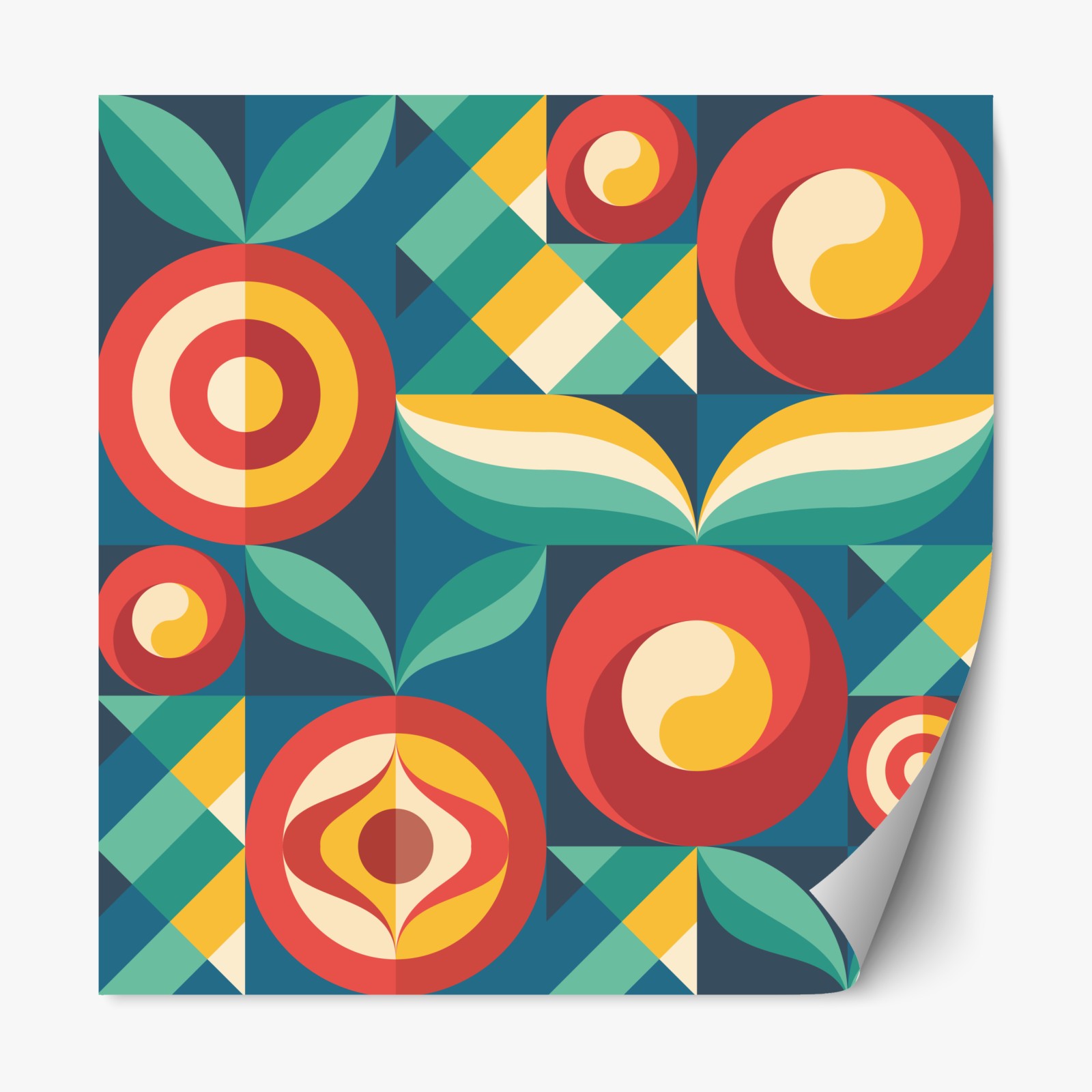 Lebhafte geometrische Blumen in kräftigen Farben verleihen modernen Retro-Charme und Energie jedem Raum.