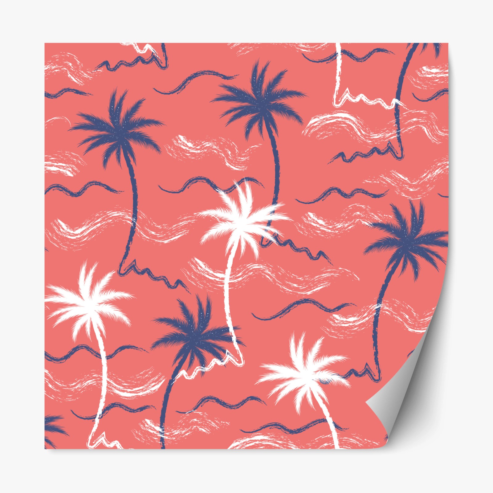 Repositionierbarer Aufkleber Tropisches palmenmuster in koralle und dunkelblau