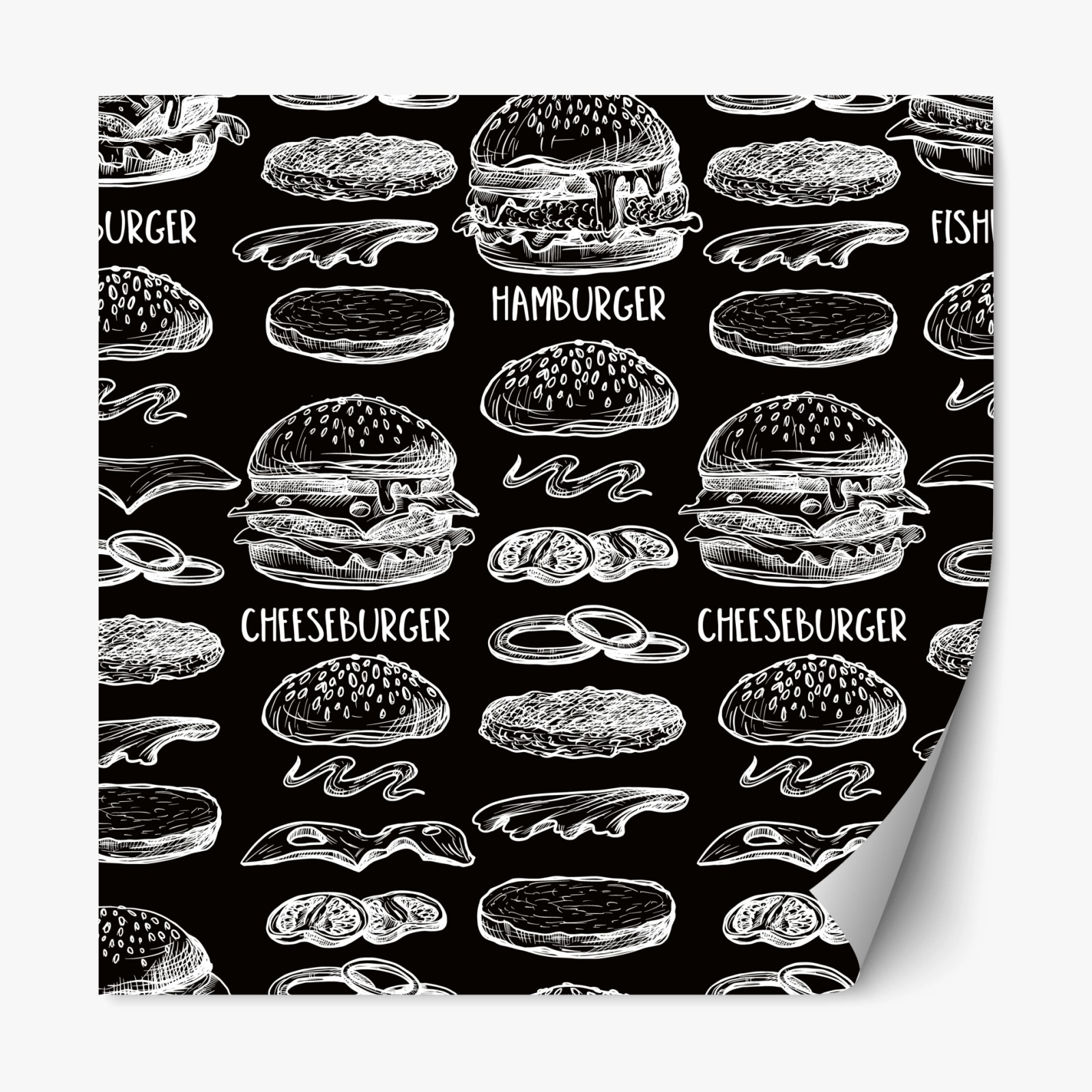 Repositionierbarer Aufkleber Handgezeichnetes burger-muster auf schwarzem hintergrund