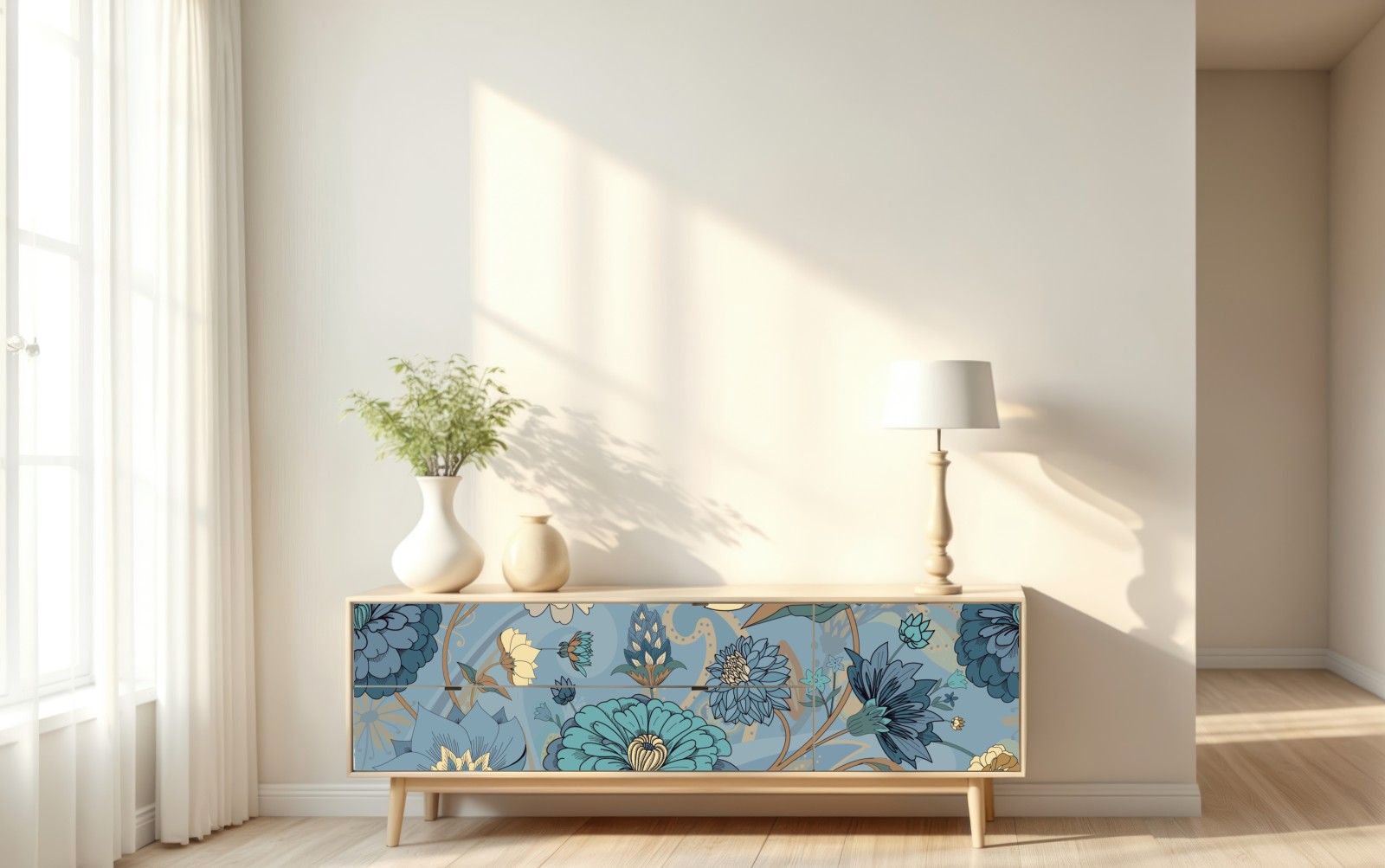 Repositionierbarer Aufkleber vintage-blumenmuster in gedämpften blau- und beigetönen