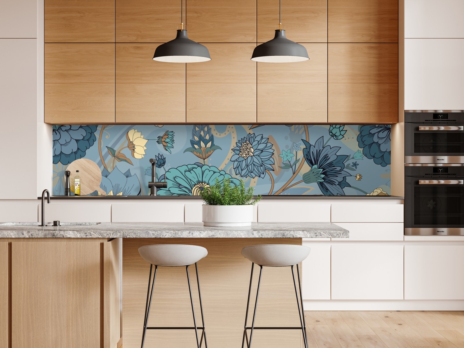 Elegantes türkisfarbenes Vintage-Blumenmuster mit filigranen botanischen Motiven verleiht jedem Interieur zeitlosen Charme und beruhigende Farben.