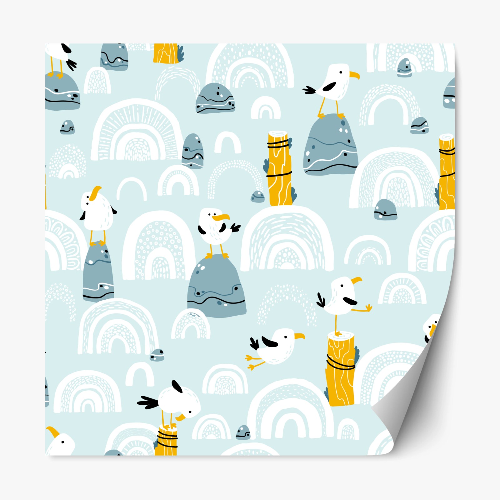 Repositionierbarer Aufkleber Verspielte möwen auf pastellfarbenen bögen