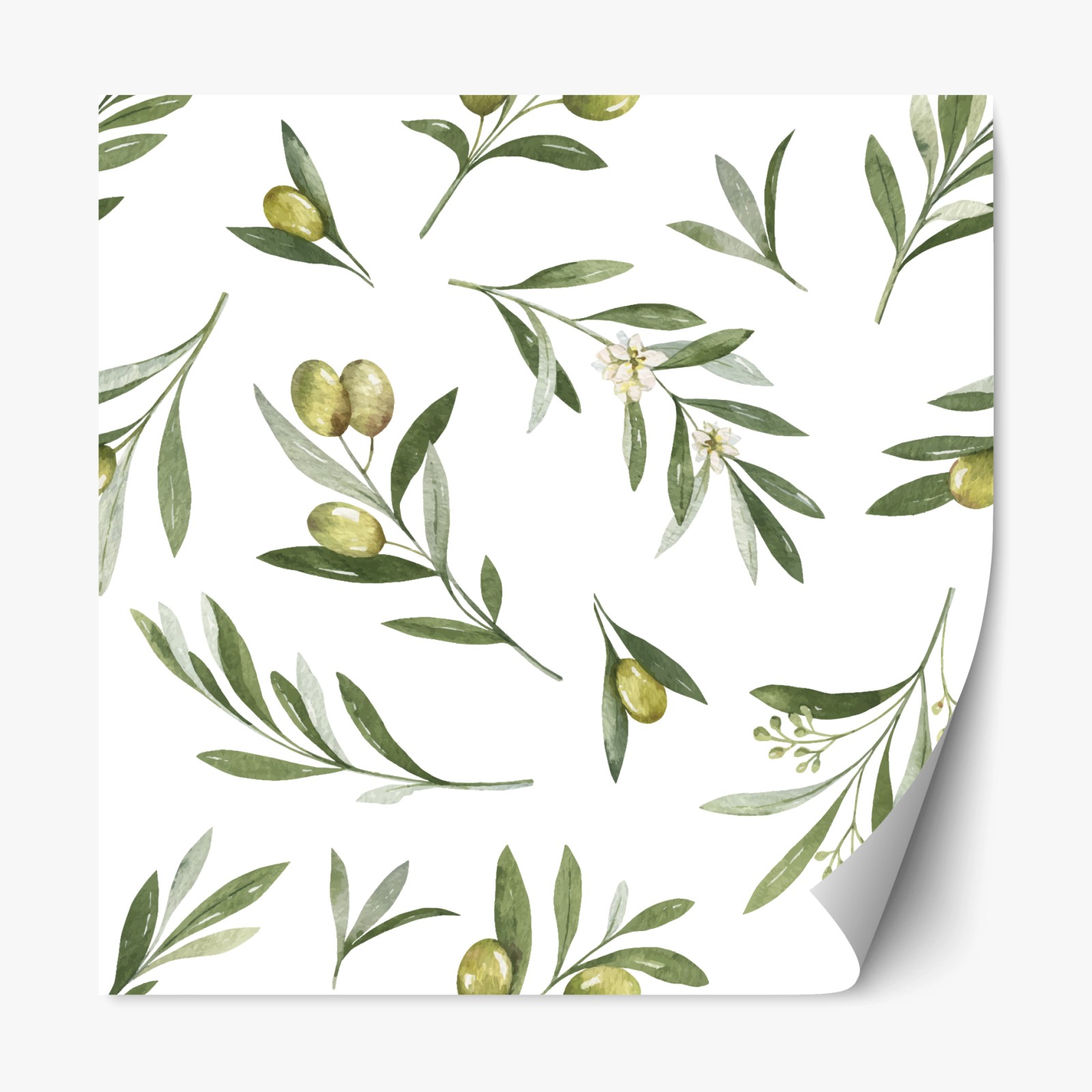 Repositionierbarer Aufkleber Aquarell olivenzweige muster
