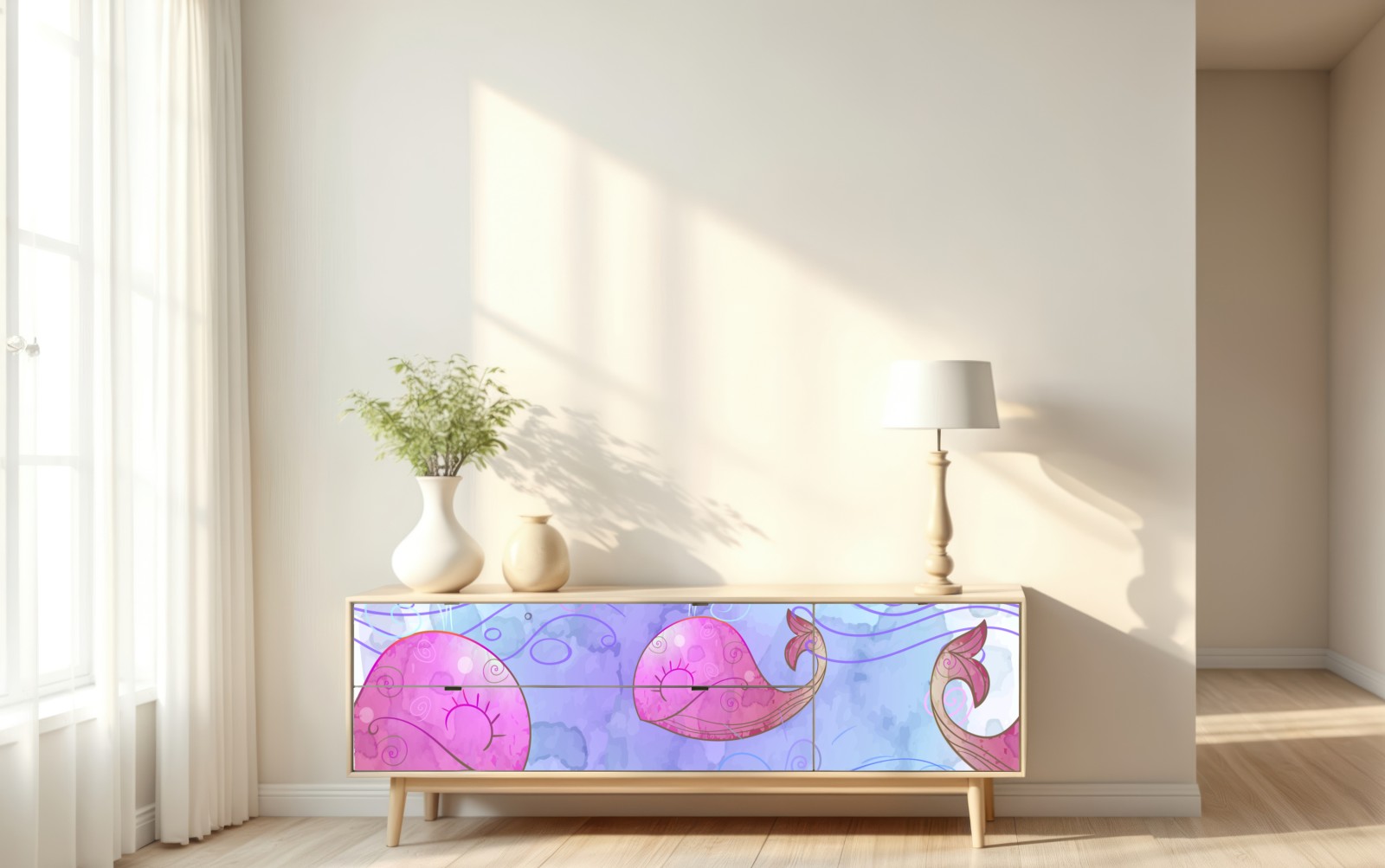 Repositionierbarer Aufkleber aquarellwale im pastellmuster fürs kinderzimmer