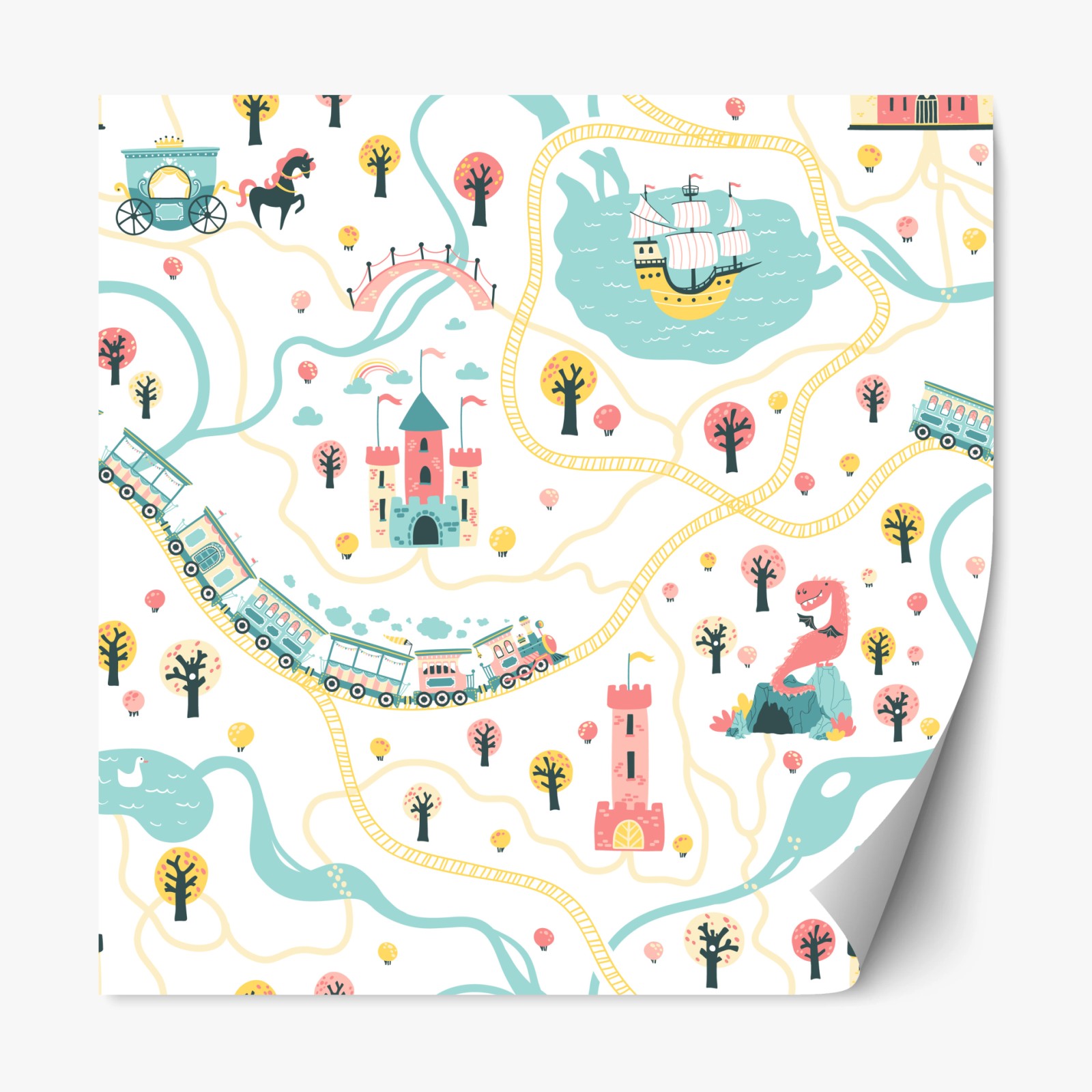 Repositionierbarer Aufkleber Pastell abenteuerkarte für kinder