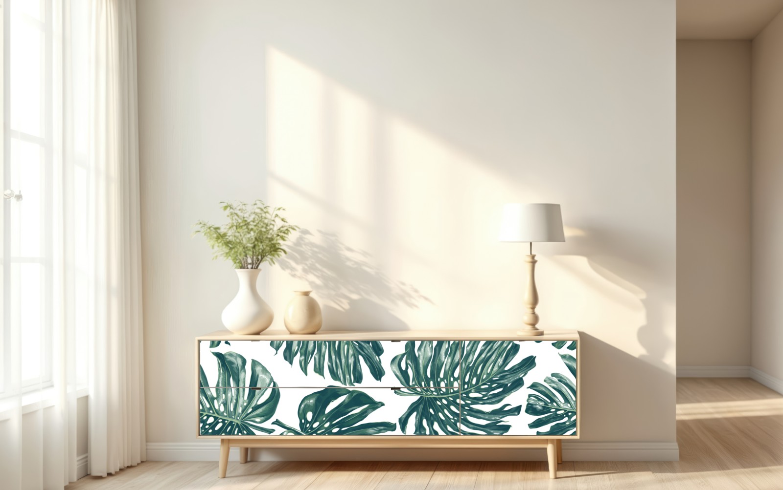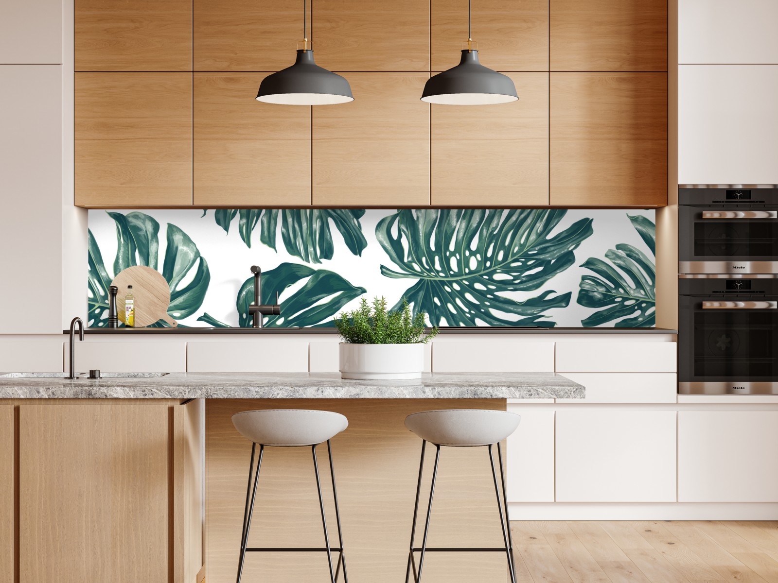 Prächtige Monstera-Blätter in Aquarell schaffen ein beruhigendes botanisches Muster, das tropisches Grün in jeden Raum bringt.