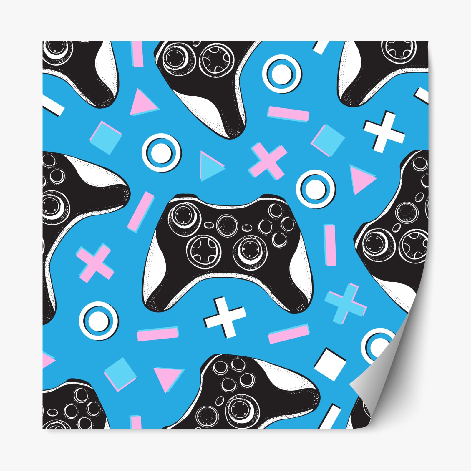 Repositionierbarer Aufkleber Muster mit gamecontrollern auf blauem hintergrund