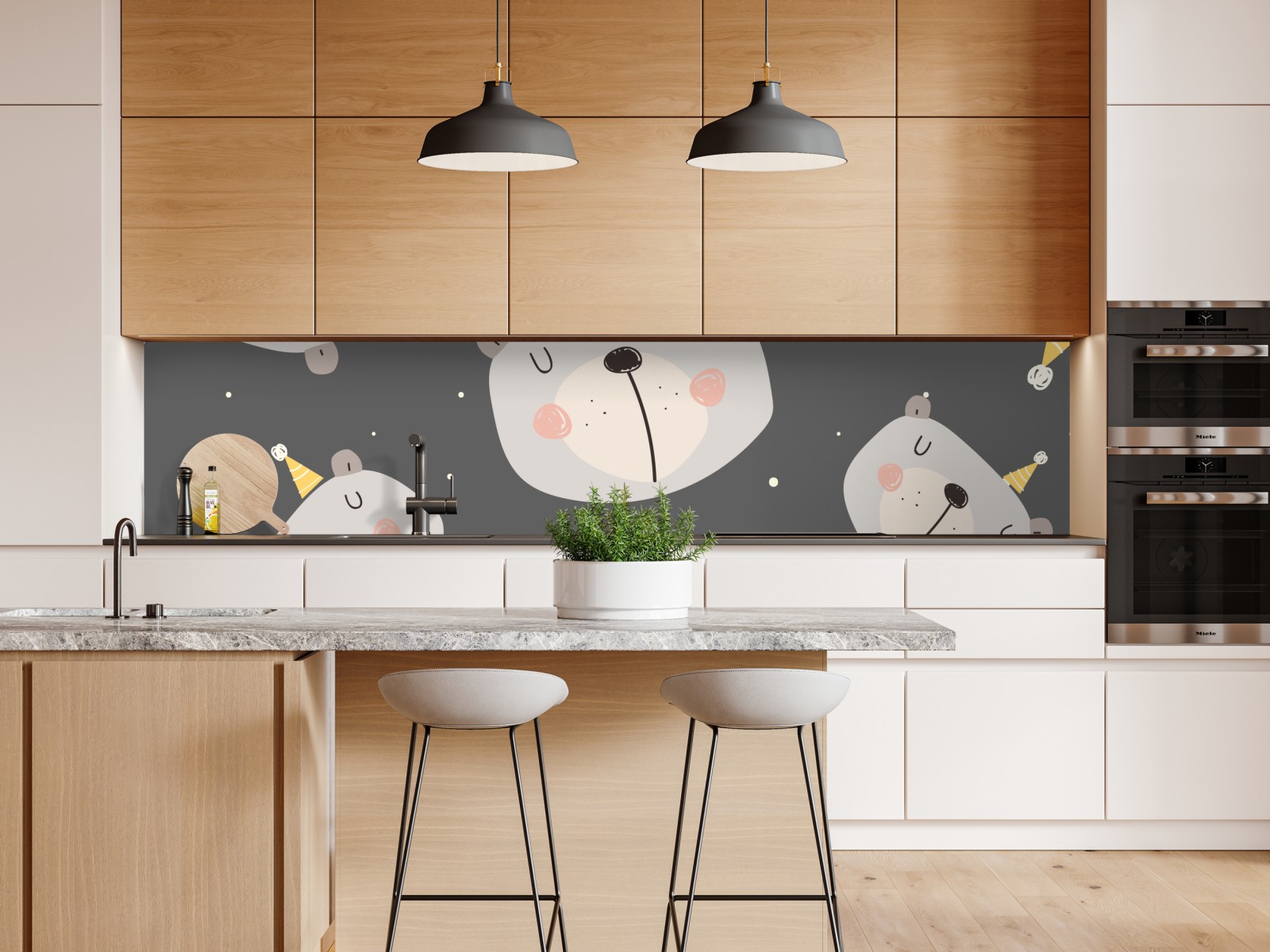 Charmante pastellbären auf grauem Hintergrund schaffen ein beruhigendes, verspieltes Muster, ideal für Kinderzimmer und Babyzimmer.