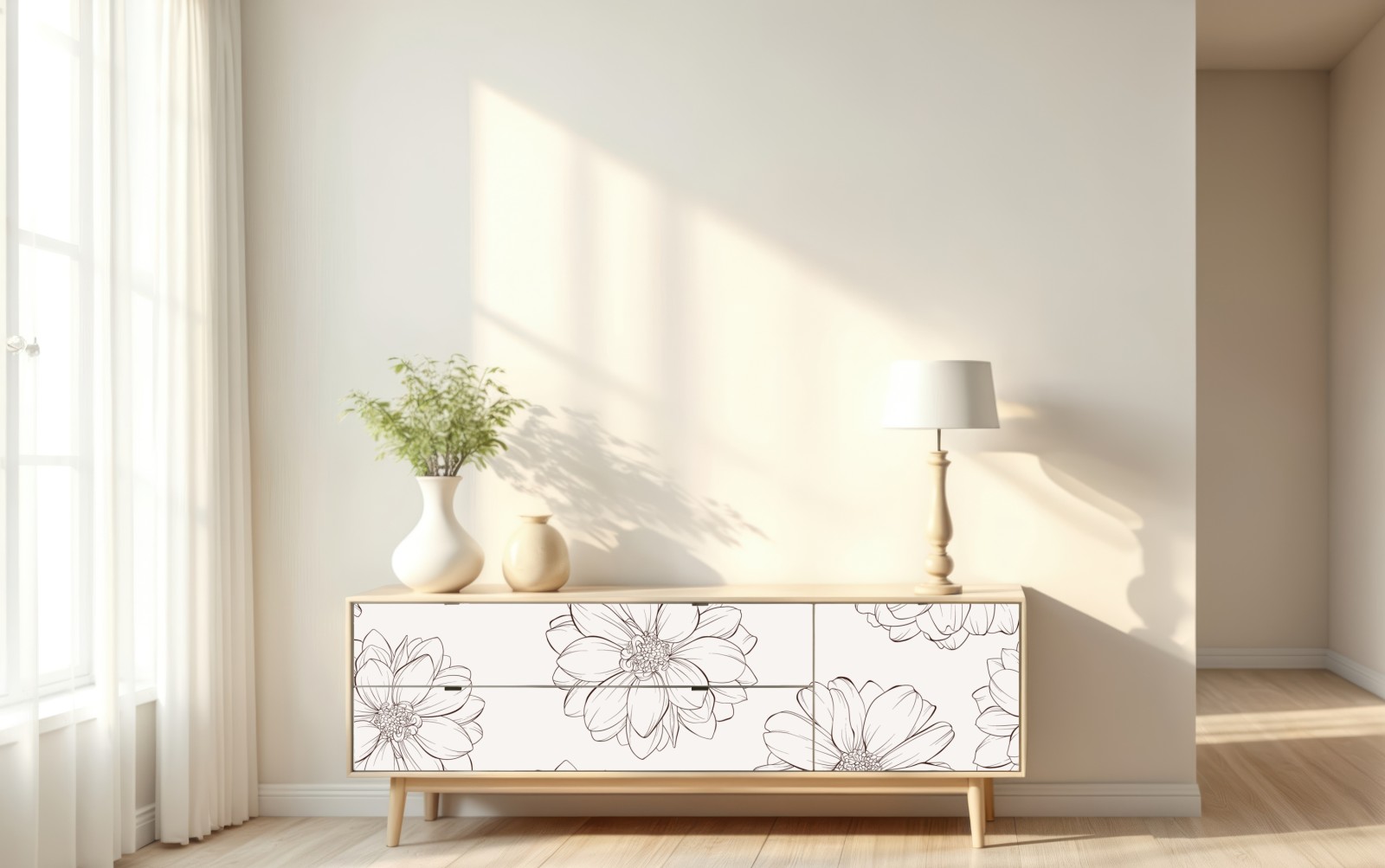 zartes handgezeichnetes blumenmuster in sanften beige tönen, das jedem raum subtile eleganz verleiht.