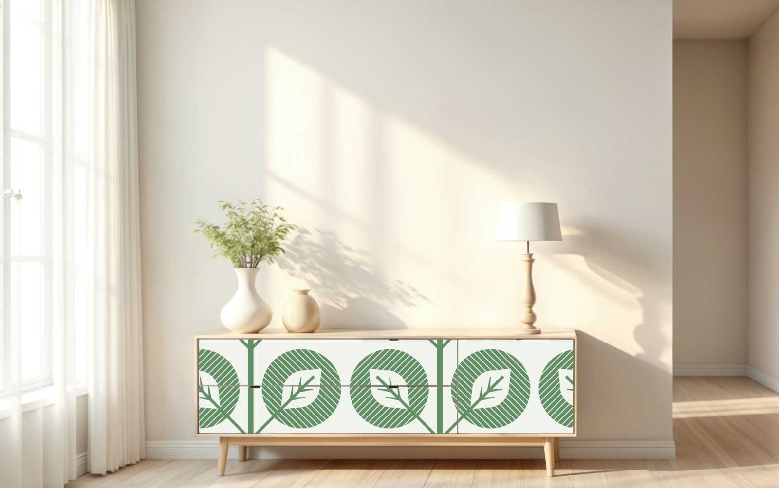 Das stilvolle grüne geometrische Blattmuster verleiht jedem Raum beruhigenden botanischen Charme und modernen skandinavischen Stil.