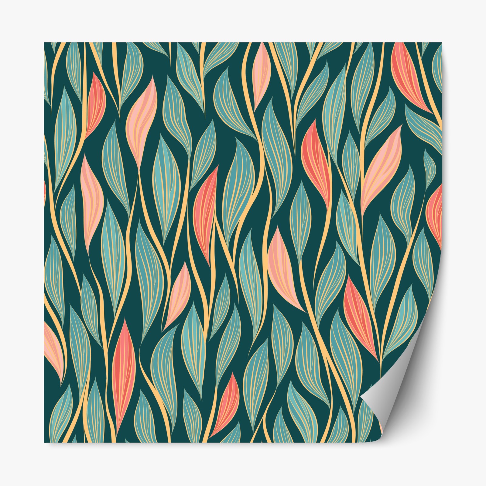 Repositionierbarer Aufkleber botanisches blattmuster in türkis und koralle