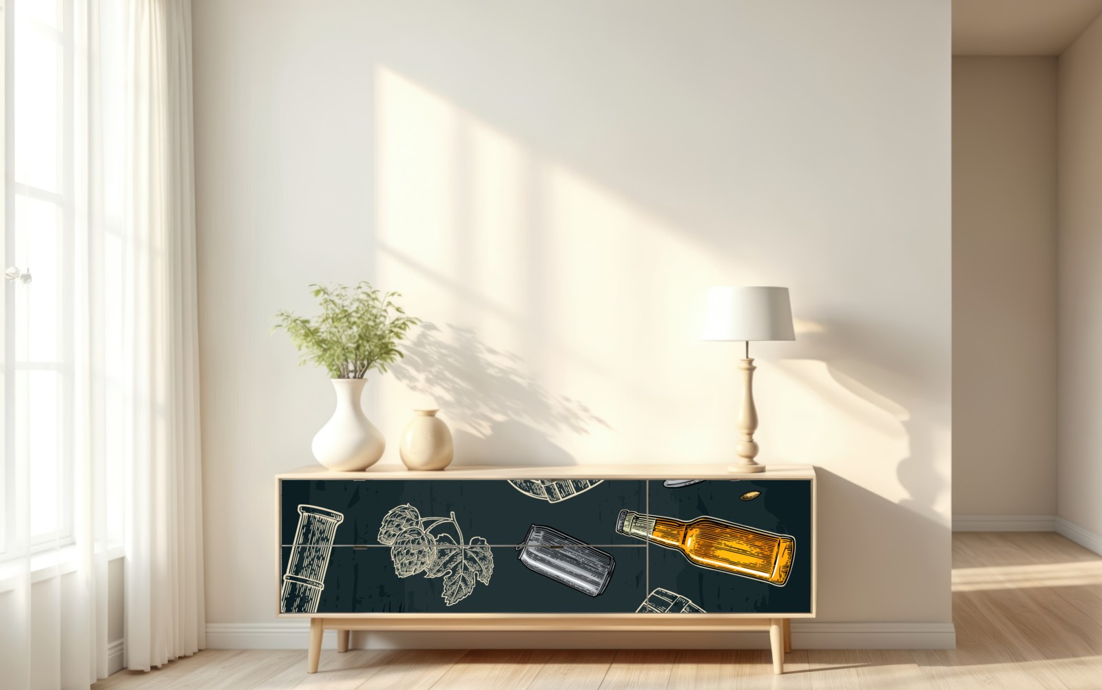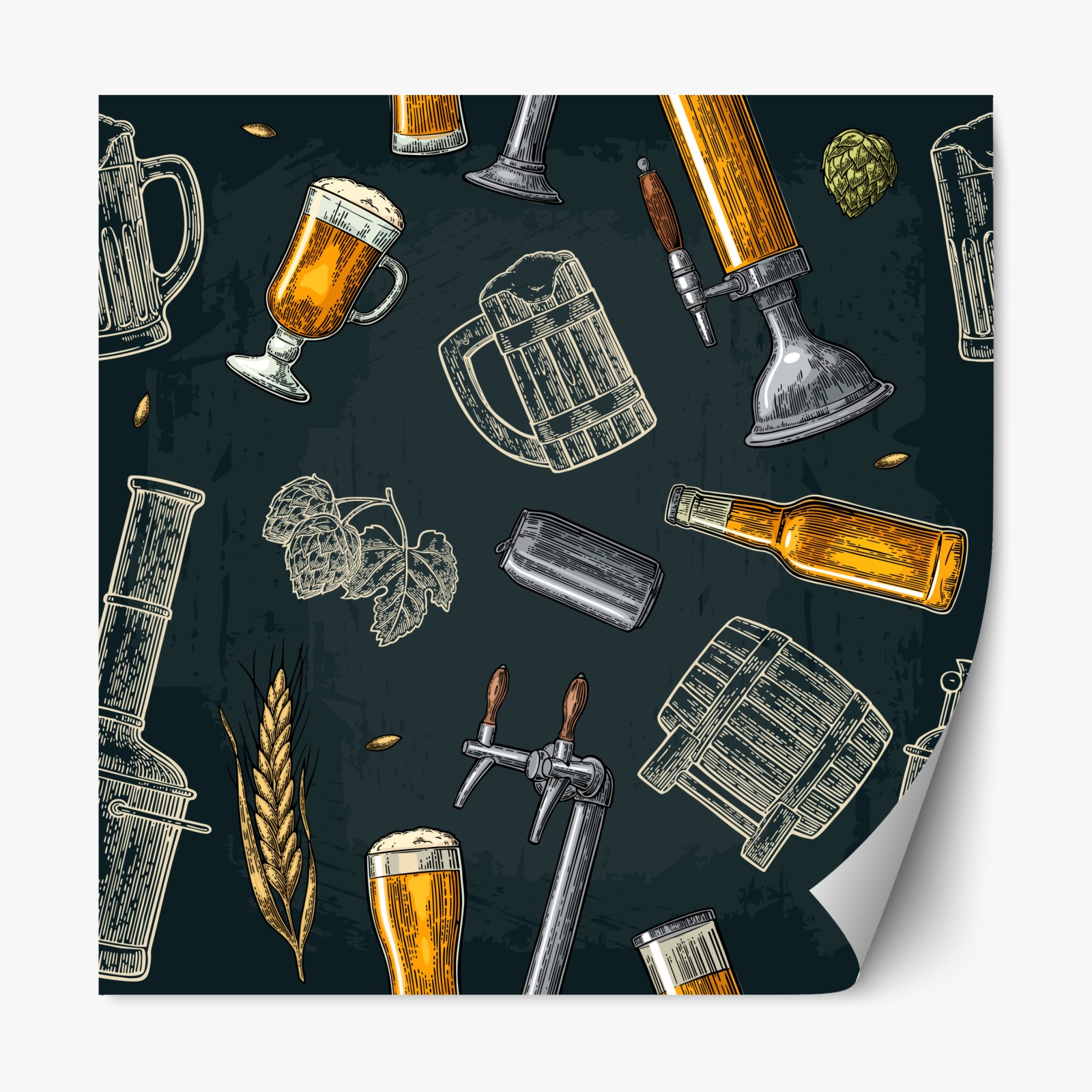illustrierte bier- und brauereielemente im vintage-stil, die jedem esszimmer oder heimbar charme verleihen.