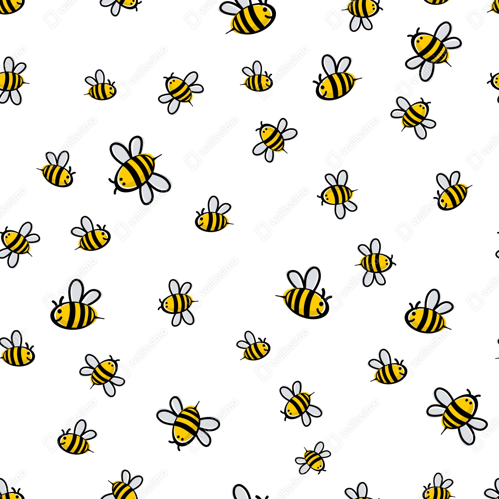 fröhliches wiederholendes bienenmuster bringt lebhafte gelbe motive auf weißen hintergrund und eignet sich ideal für kinderzimmer oder babyzimmer.