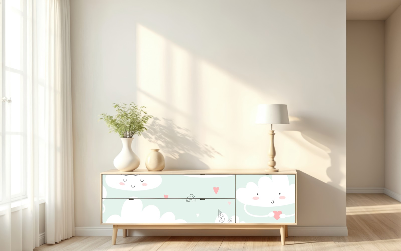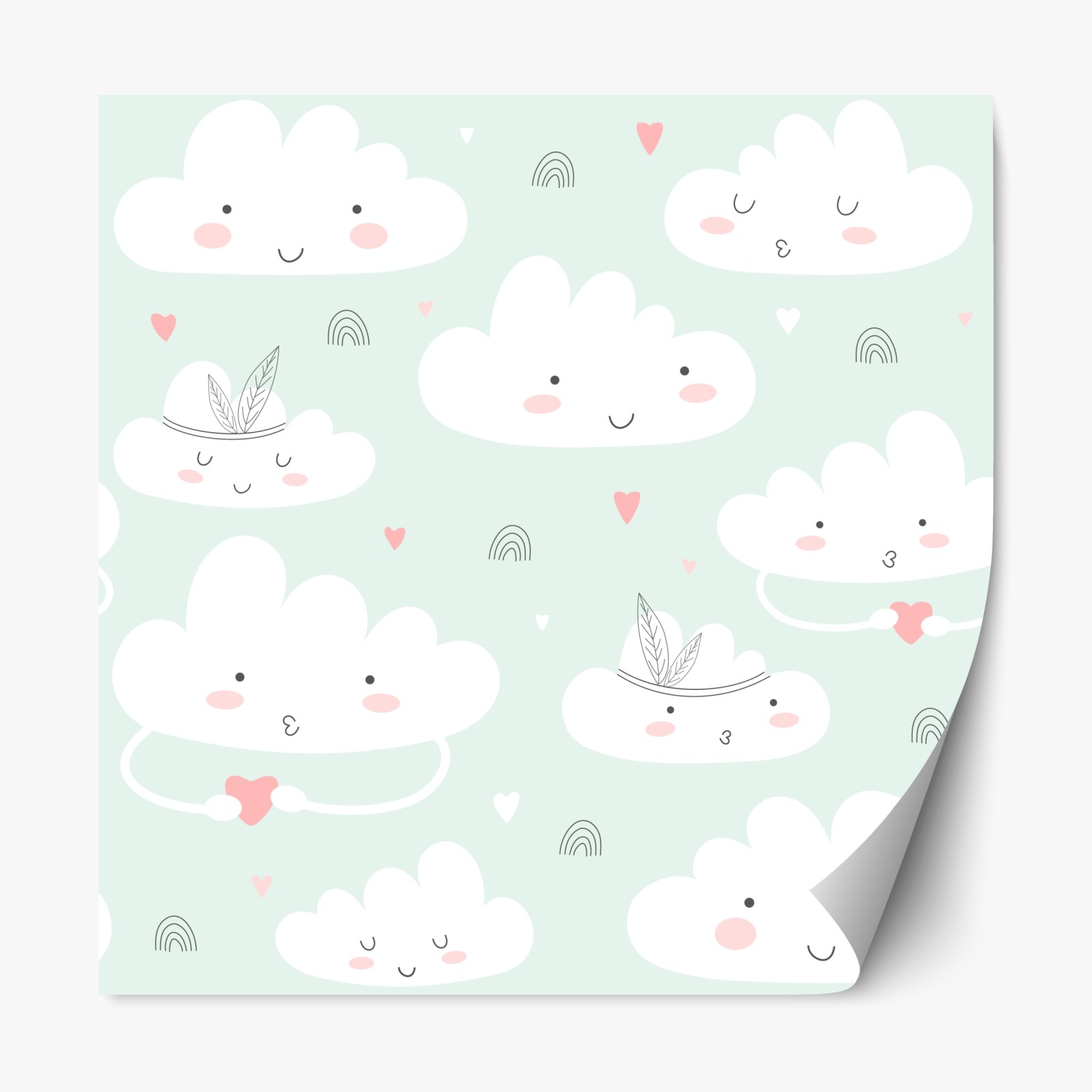 Repositionierbarer Aufkleber lächelnde wolken pastellmuster fürs kinderzimmer