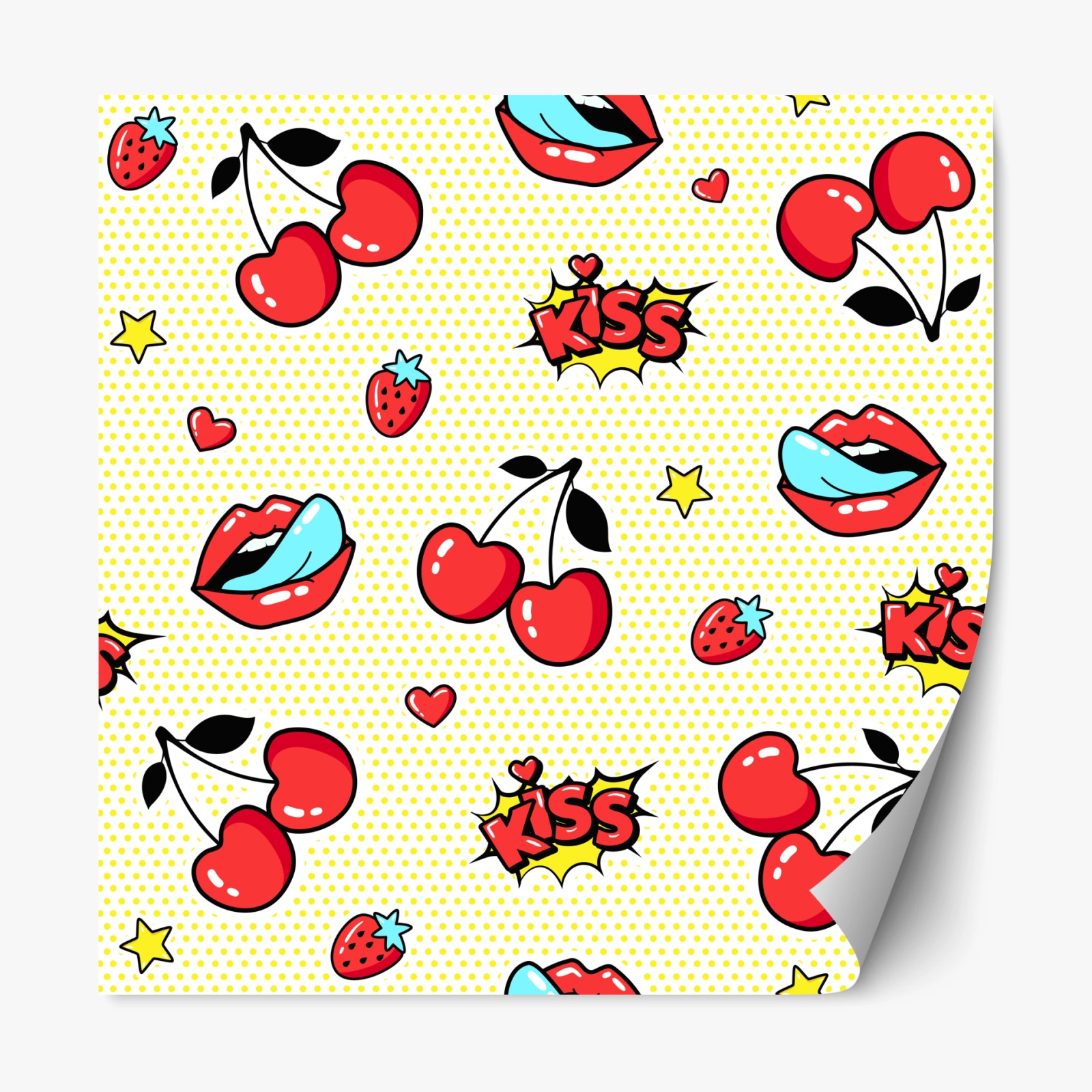 Repositionierbarer Aufkleber Verspieltes pop-art kirschen-kuss muster