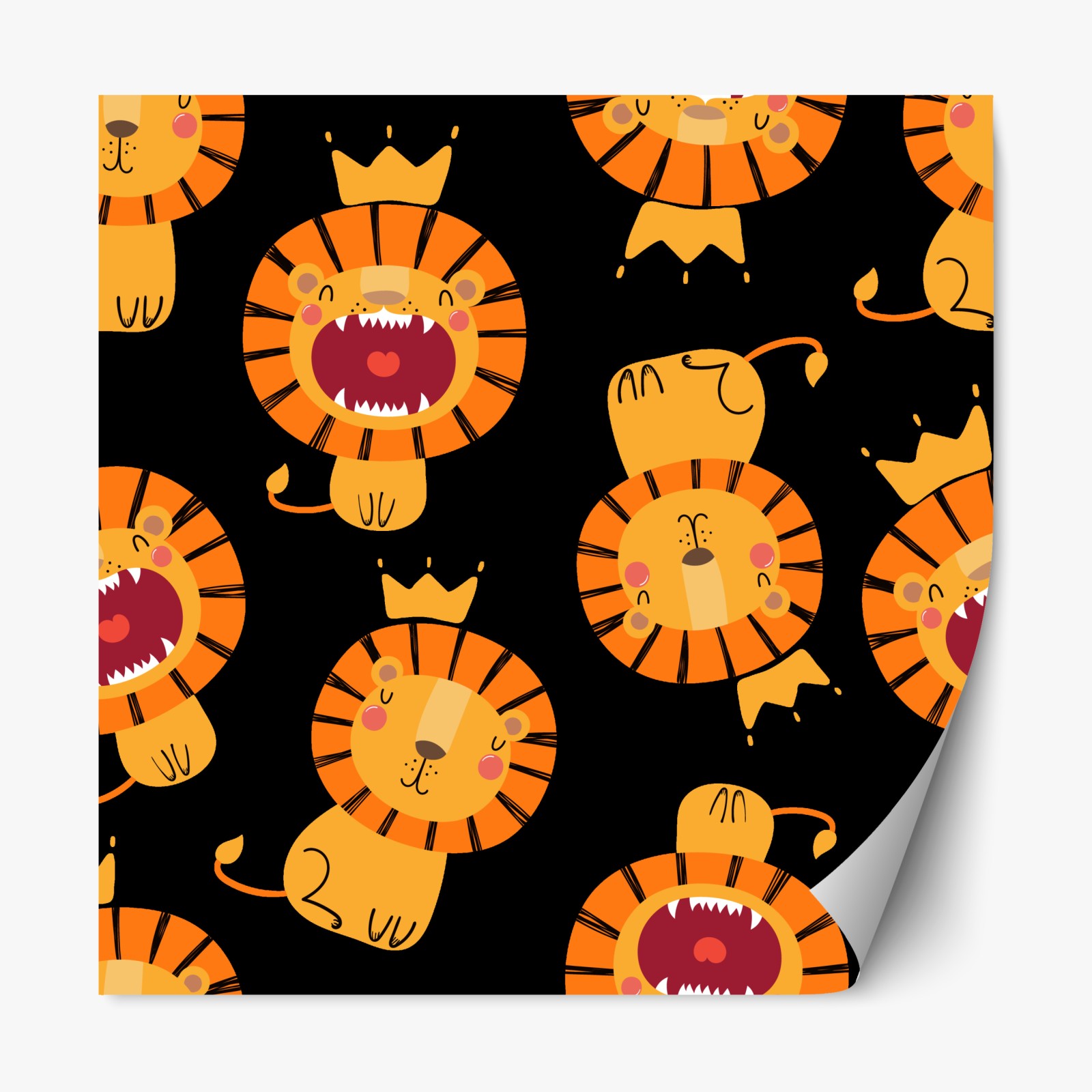 Repositionierbarer Aufkleber verspieltes löwenmuster auf schwarzem hintergrund