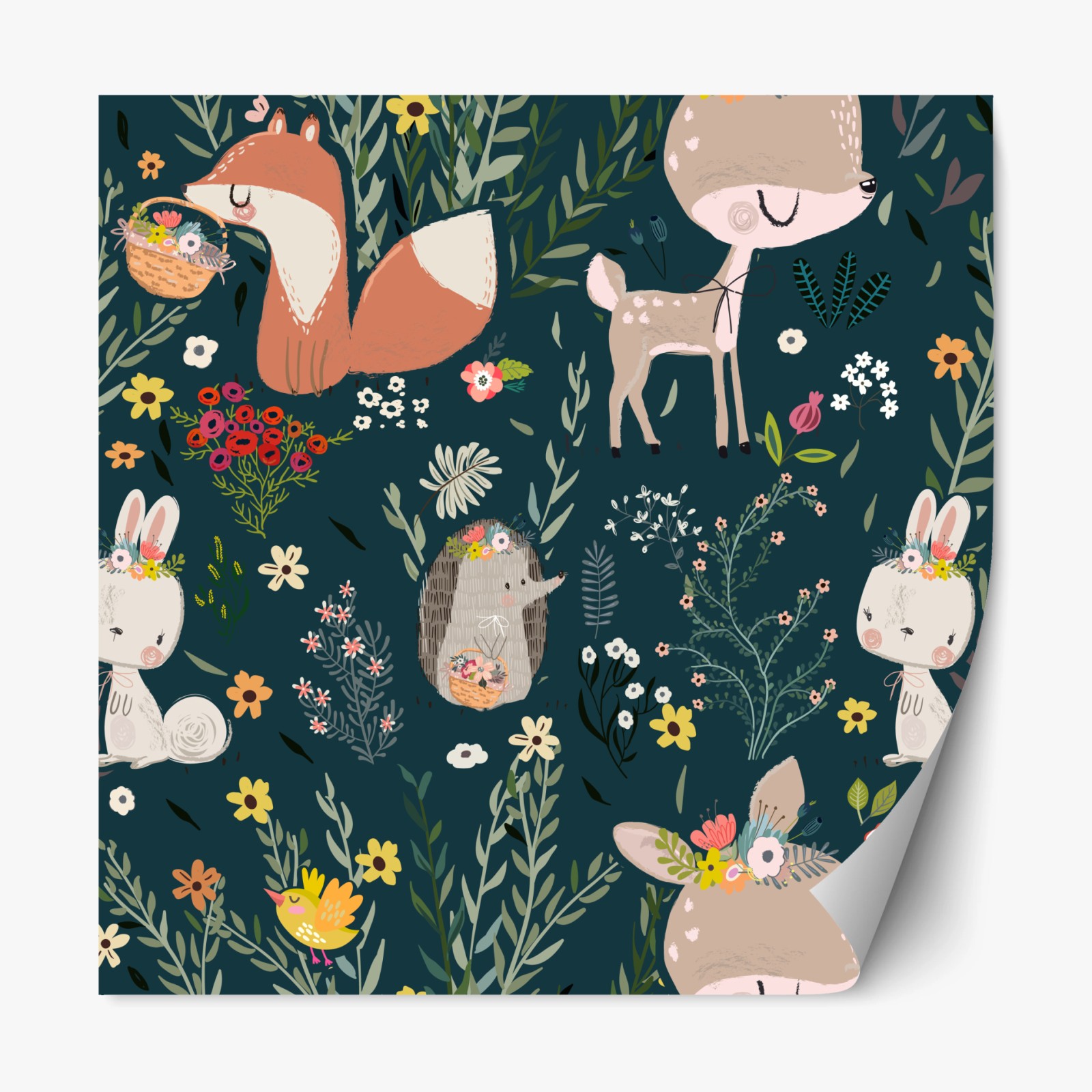 Repositionierbarer Aufkleber Waldfreunde blumenmuster fürs kinderzimmer