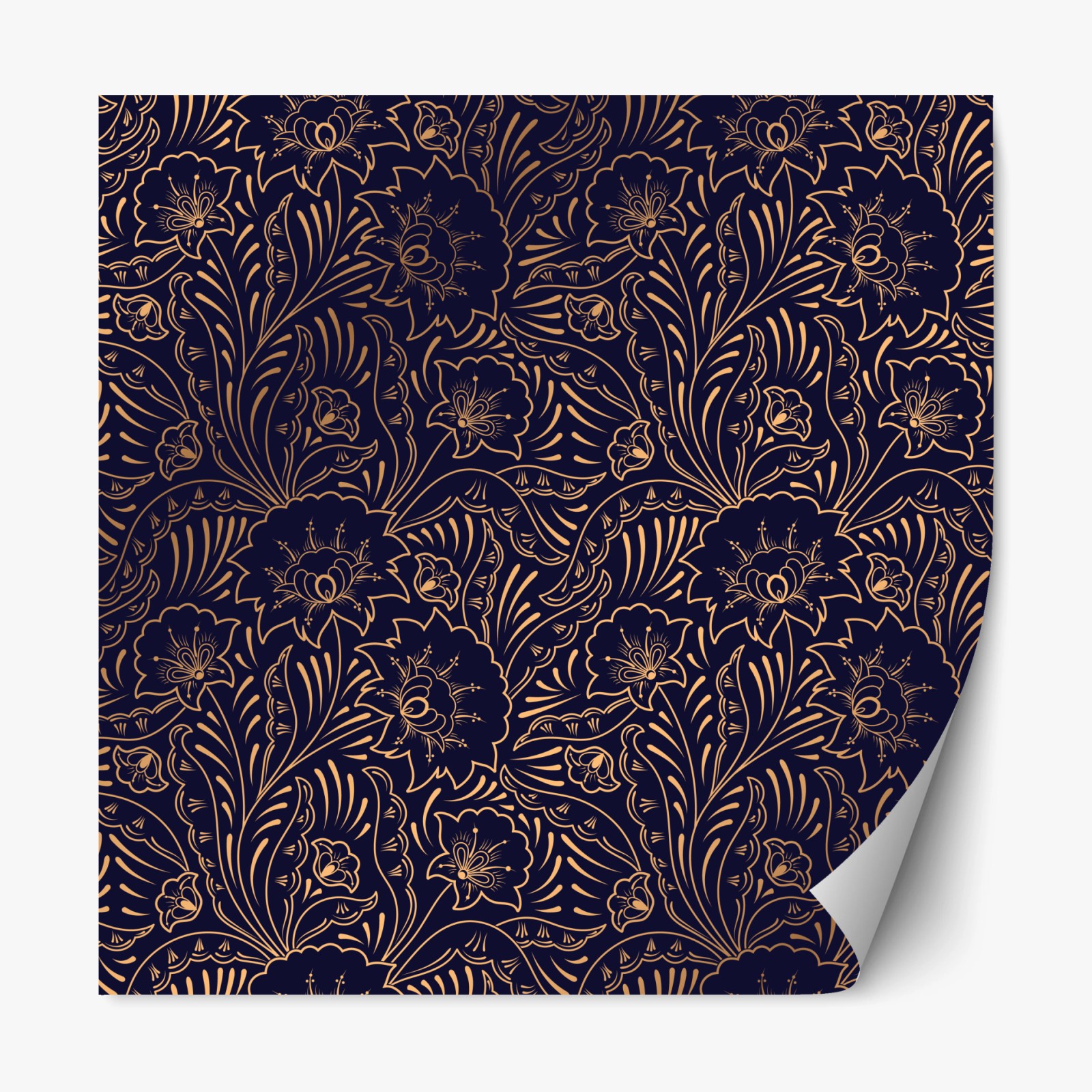 Repositionierbarer Aufkleber Goldenes blumenornament auf nachtblauem hintergrund