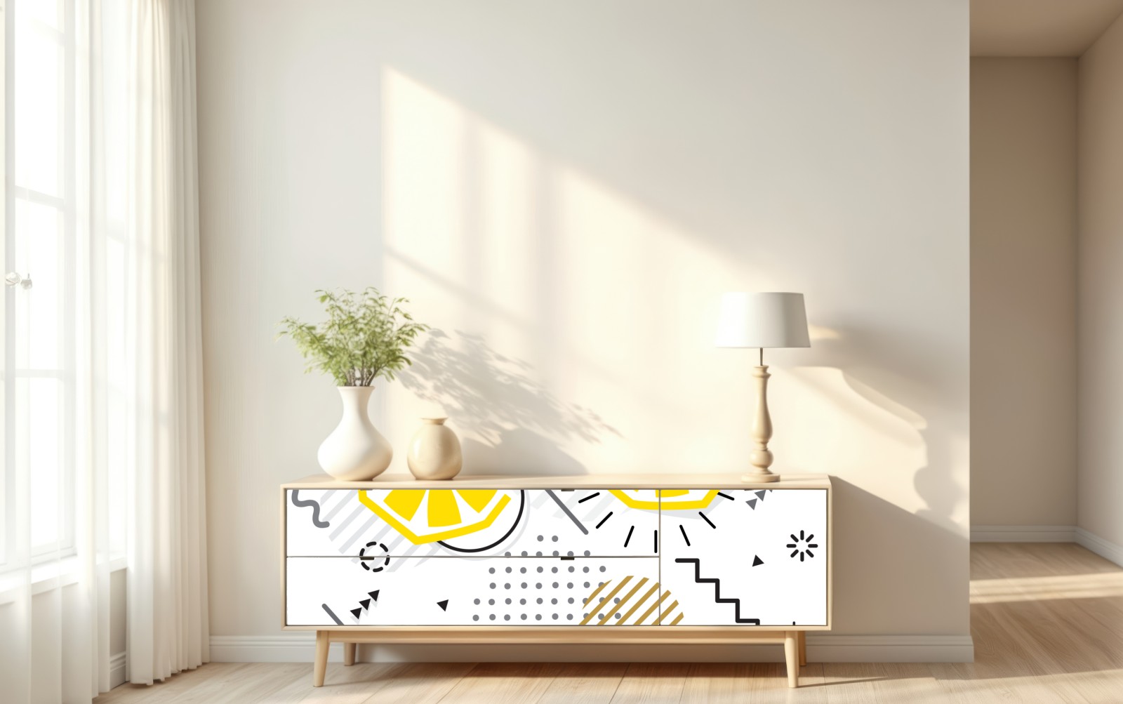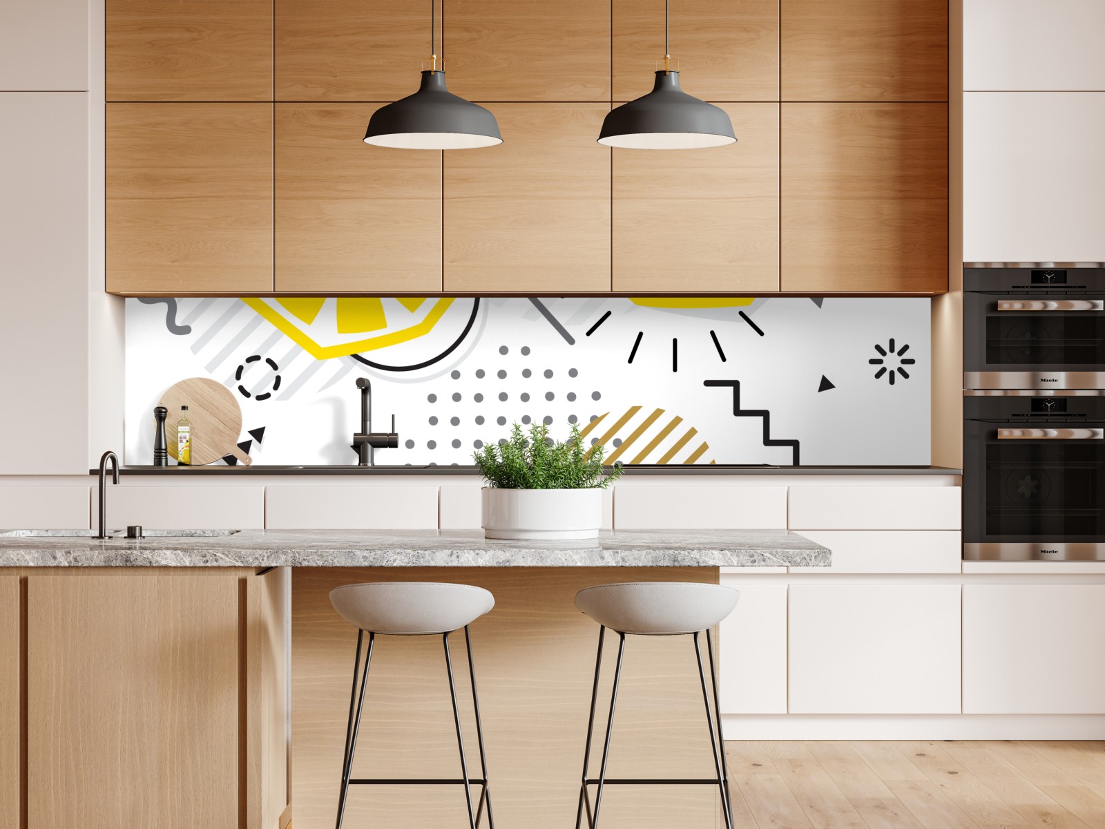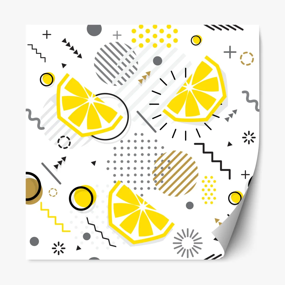 leuchtende zitronenscheiben und geometrische formen ergeben ein modernes, fröhliches design, das küche oder essbereich aufhellt.