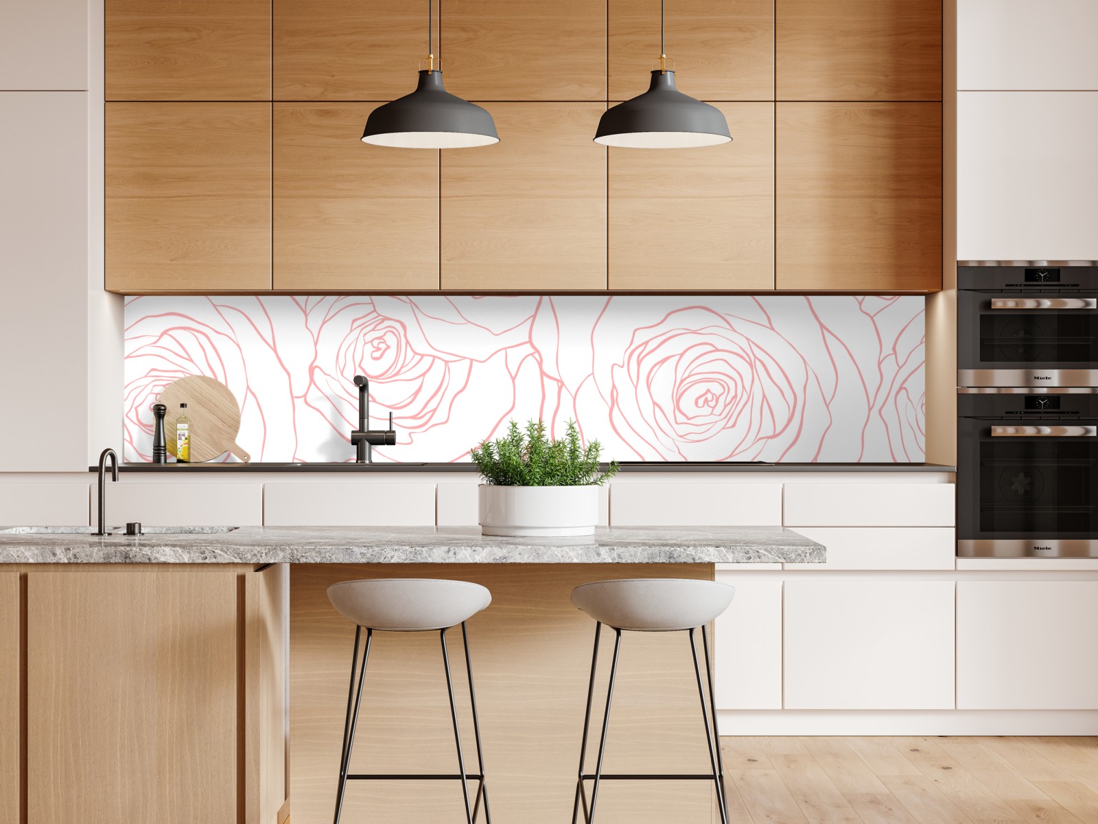 zarte linienzeichnung von rosen im pastellton schafft ein elegantes und beruhigendes motiv, perfekt für schlafzimmer und kinderzimmer.