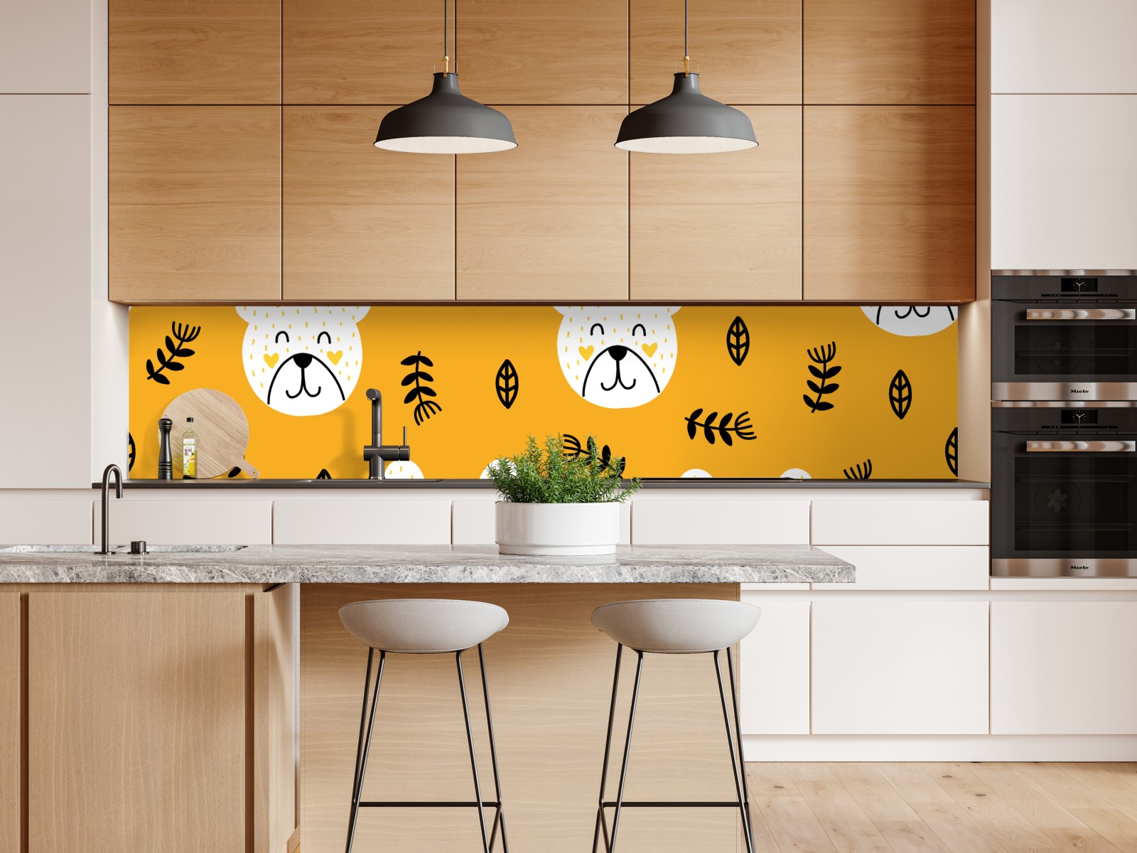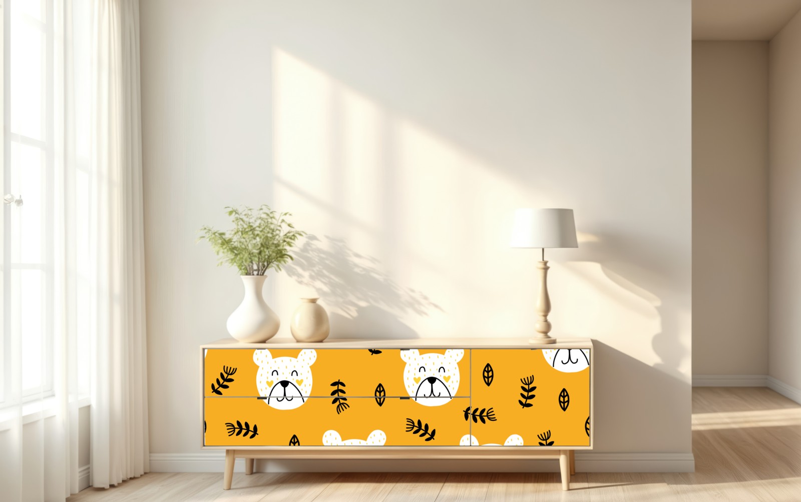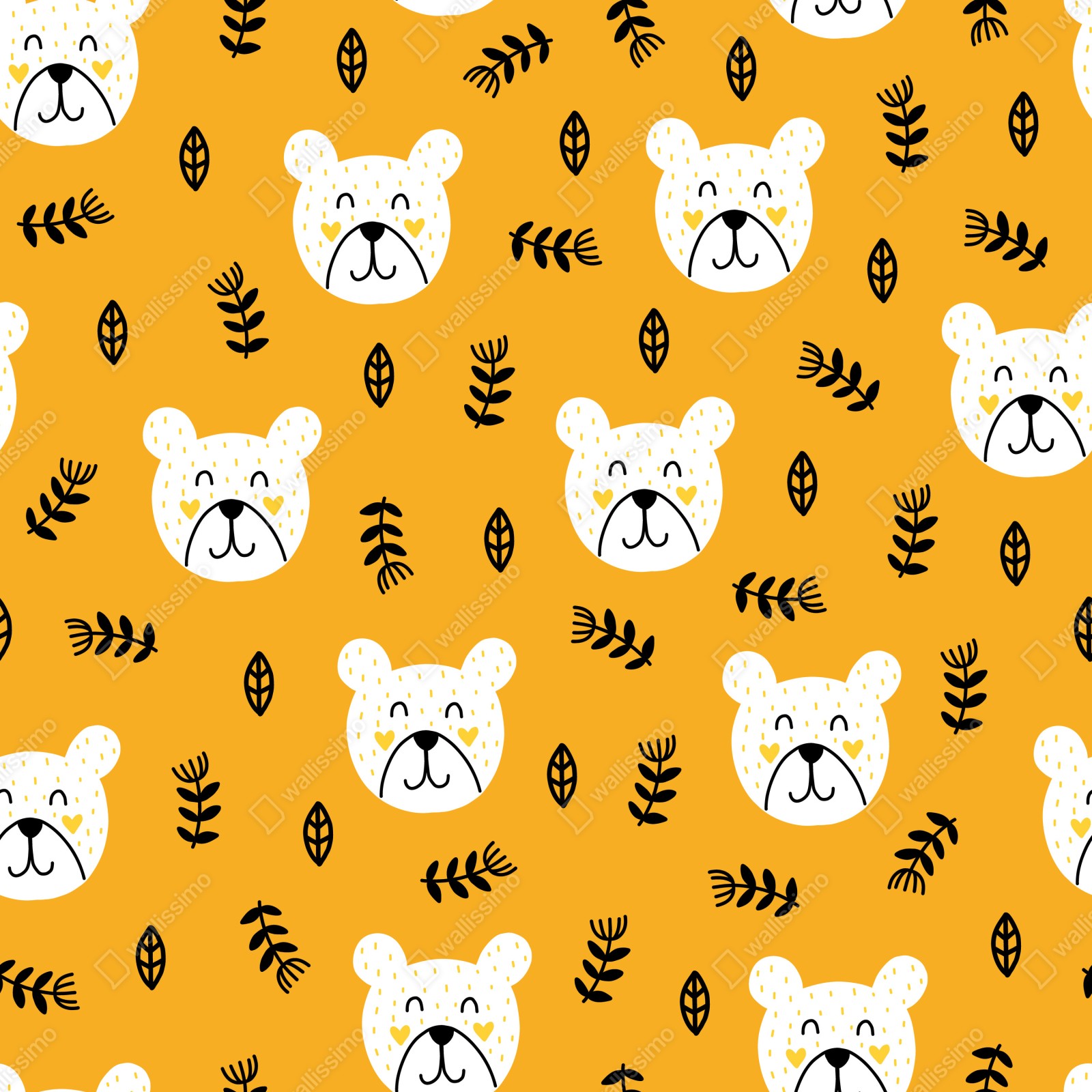 Verspieltes wiederholendes Bärenmuster in warmen Orange-Tönen schafft eine freundliche und gemütliche Atmosphäre im Kinderzimmer.